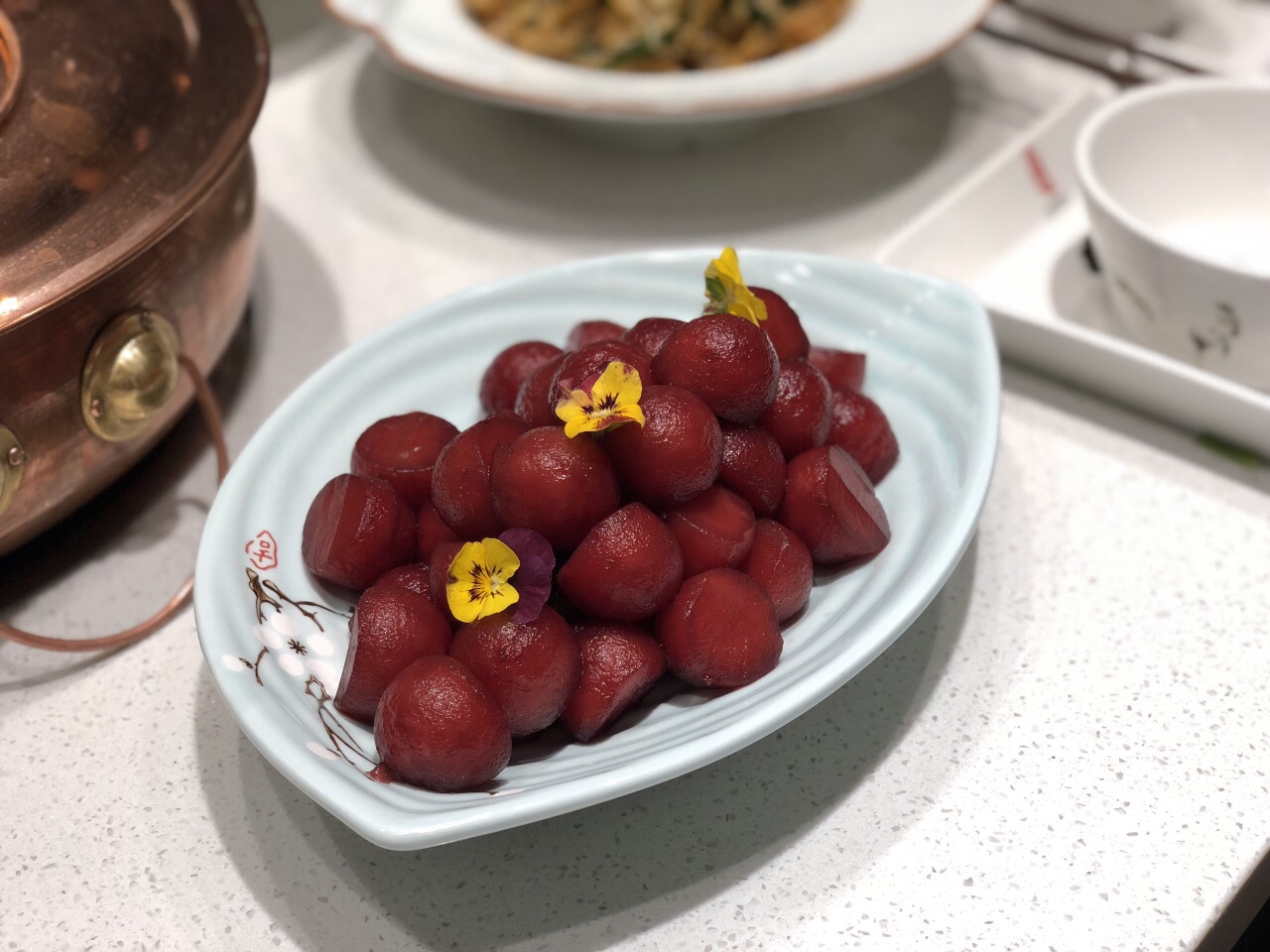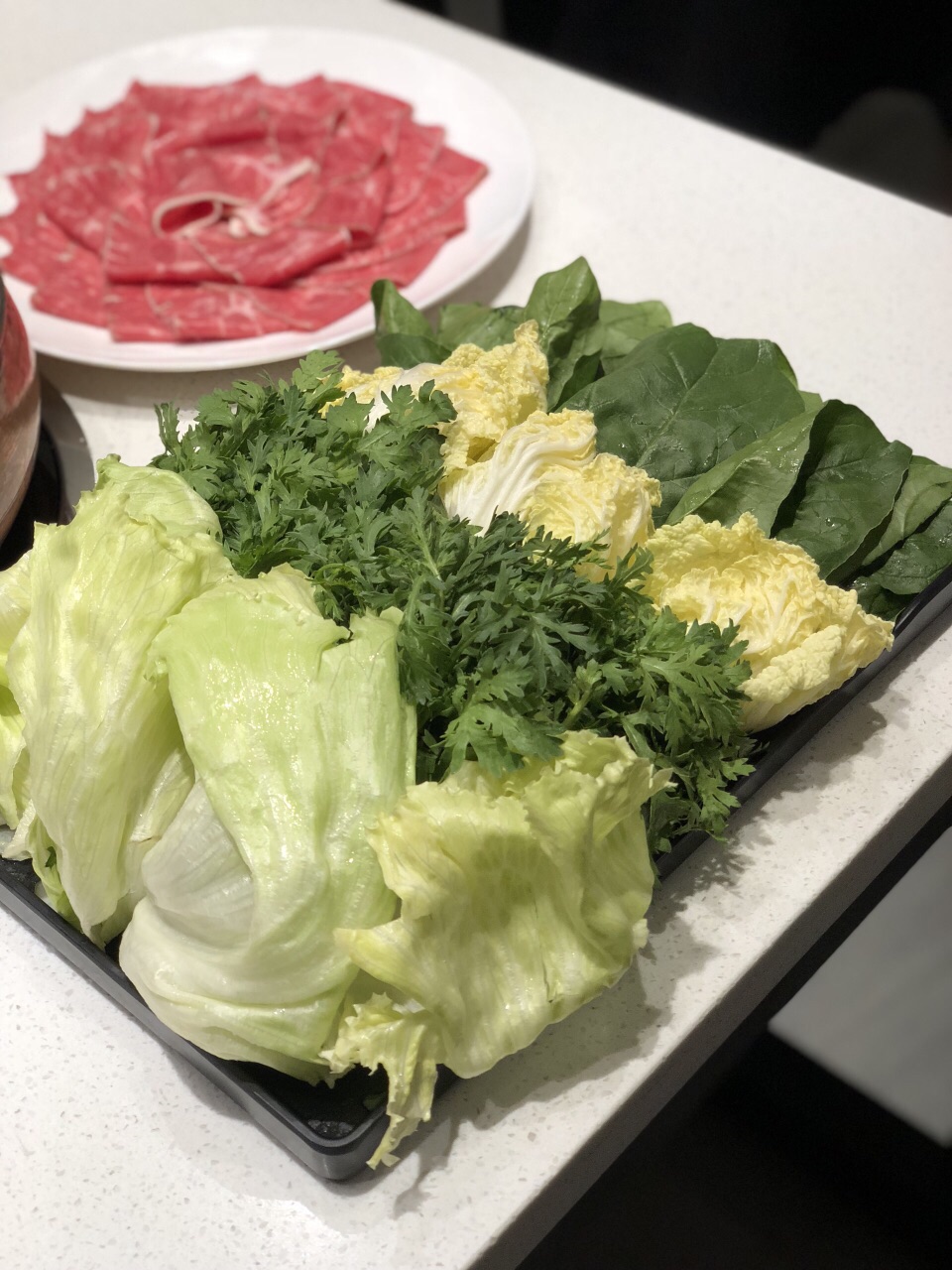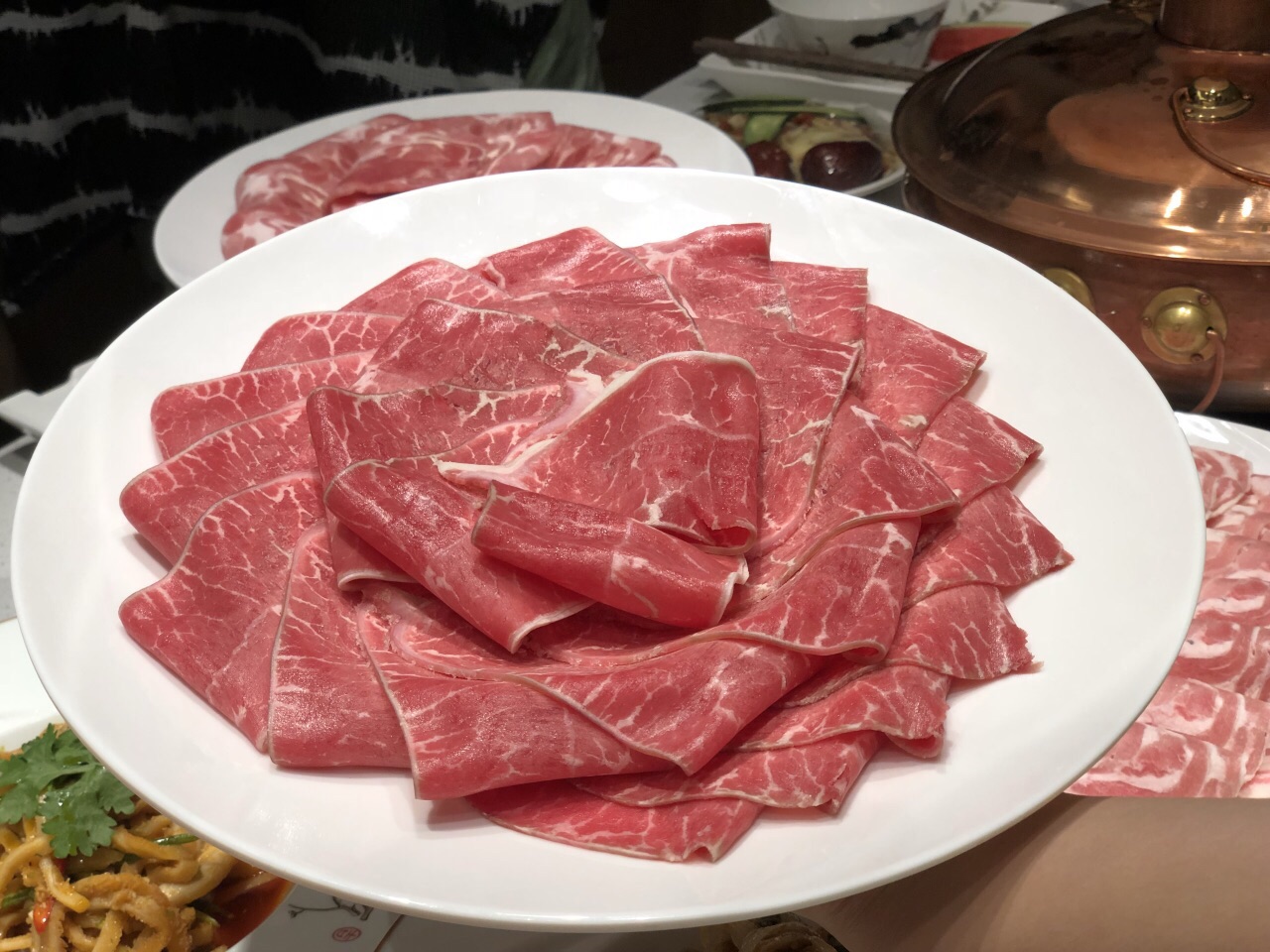 一场秋雨一场凉,不如吃点涮肉暖暖胃? 种草了这家好久,终于开到了单位门口,大都荟店,这不赶紧来拔草啦! 治愈系的简洁风,原木色装修,透明玻璃窗,大理石白餐桌,一览无余的美好,我的style~ 吃货都知道好肉一定要吃京式清汤锅,这才能吃到真正的肉香!开锅前加清水,锅底料加的大枣、姜,枸杞,葱段等,没有多余的调味品,能最大限度的保证涮肉的鲜美! 雪花牛肉、安格斯肥牛、羔羊上脑……现点现切的,超大块超厚,雪花牛肉奶香奶香的,安格斯肥瘦相间,佳佳最爱的还是澳洲和牛,当之无愧的牛肉战斗机,5秒涮肉,柔、软、嫩、香,一整片沾着咸香的芝麻酱放进嘴里,一口一口接一口,真心赞! 肉棒棒哒,凉菜也不错哦,尤其是凉调面筋,吃出小时候吃宝鸡擀面皮的味道,听说凉菜师傅是特意请的,怪不得一下子让人连吃两盘!还有一款娇艳欲滴的红色小可爱,甜酸味道却是蔬菜做的,至于原材料是什么,你们尝一下就知道啦~ 高新大都汇3号楼