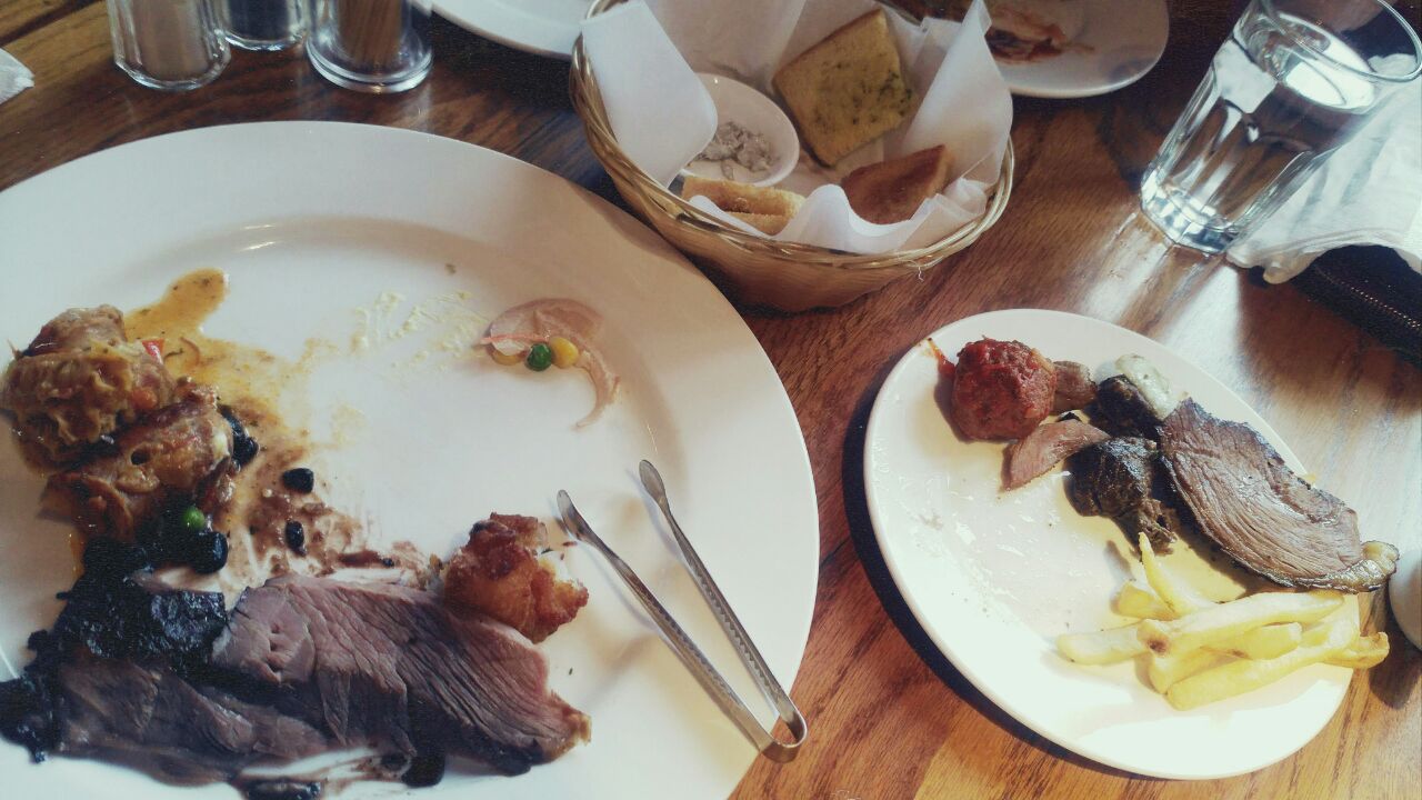 生日的中午来吃大肉烧烤。有单点,有自助。自助餐不含软饮酒水,纯肉一个价,含海鲜一个价。定了纯肉自助,吃不了几片,鸡都没有吃,牛也没尝下全部品种,而且每次来都让切薄一小片,服务生会全场转悠,一直送肉,吃饱了就把牌子翻过来,就不会再来了。巧克力的冰淇淋超级好吃啊