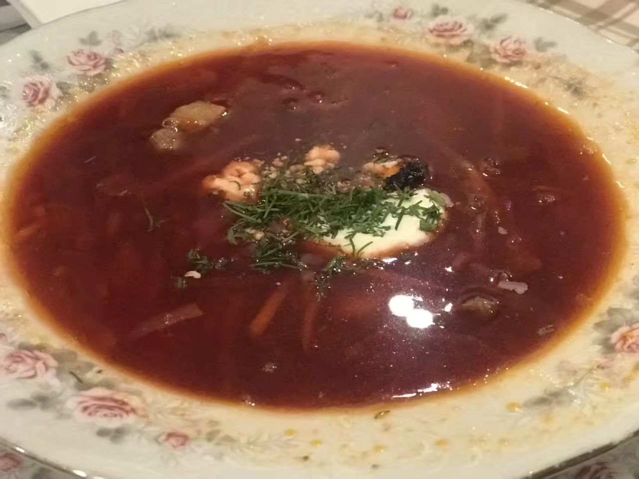 网友2018-09-20很棒的一次用餐,环境很舒心,体验了一次真正的传统的家常俄餐。但馅饼和牛肉都很棒很棒的一次用餐,环境很舒心,体验了一次真正的传统的家常俄餐。俄式必有红菜汤,虽然最初味道有点不习惯。但馅饼和牛肉都很棒。