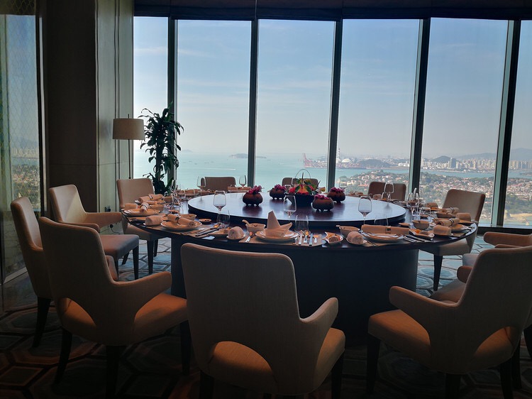 厦门有一处能在云端品尝美食的餐厅 鹭城轩位于康莱德酒店的39层,餐厅的环境超级棒,蓝天白云☁大海,让人心旷神怡,胃口大开,为这无敌海景疯狂打call☎。 除了环境棒,店里的菜品也很给力,不仅外观精致,口感也特别棒(★‿★) 黑松露金沙焗老虎虾:爽脆清甜的老虎虾肉搭配酸甜的金沙汁,异香扑鼻。 老温炒饭:名字很有创意,炒饭颗粒分明,光泽饱满,配料丰富,吃起来香喷喷的。 宫廷一品吊炸鸡:皮特别的香脆,肉质鲜嫩爽口。 鹭城点心拼盘:推荐虾饺,皮薄馅大味鲜。 香煎安格斯牛仔骨:牛肉很有嚼劲,肉香十足,牛排的颜值也超赞。 紫米葱烧辽参:辽参特别Q弹,汤喝起来特别甘甜。 广式烧味拼盘:肉质结实鲜美。嚼起来超有口感,建议蘸点调料,口感更佳~ ♀️服务员态度很好,轻声细语,素质高,用餐体验很舒服。(*^▽^*)