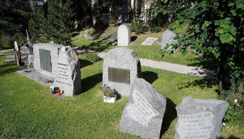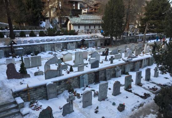 登山者之墓纪念著攀登马特洪峰勇敢登山者的遗骸,位于教堂后方,旁边的桥也是清楚可见马特洪峰之处、...登山者之墓纪念著攀登马特洪峰勇敢登山者的遗骸,位于教堂后方,旁边的桥也是清楚可见马特洪峰之处、拍摄日出地点之一,墓地静谧而庄严,深具纪念意义
