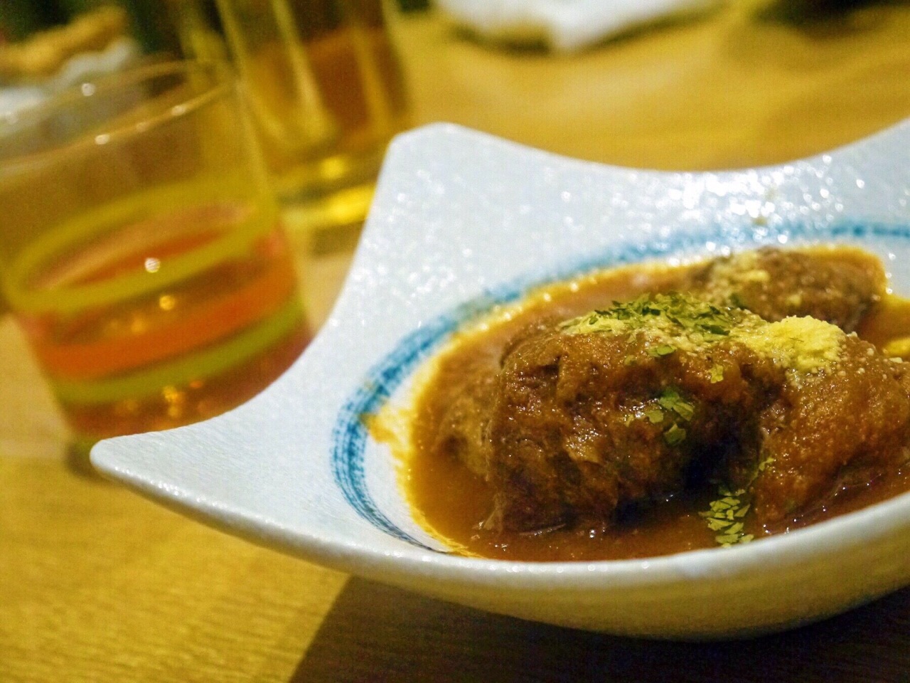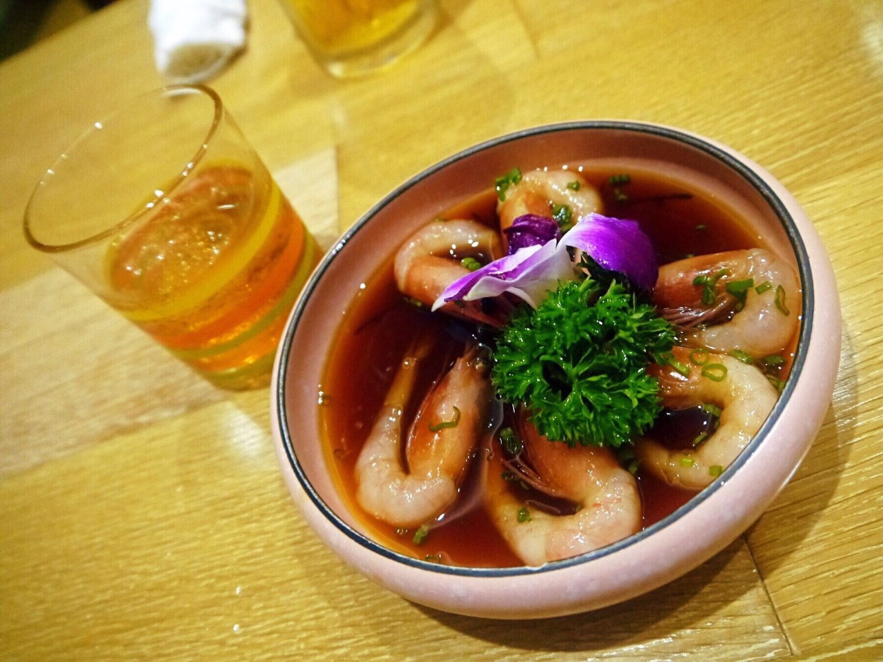 小居酒屋 门面看起来很小,走进来是别有洞天 店铺分为四层 每一层都采取了不同的装修风格 装潢的温馨别致 半开放楼阁天马行空 感觉很用心 店里的墙上贴着各式各样的日式海报 放着明快的霓虹国音乐 菜单是纯手写的 分为日语和中文两种 很有feel 【绍兴酒渍甜虾】 甜虾是剥好的 新鲜大个 弄的很干净 方便快速吞咽 绍兴酒香气扑鼻 刚入口酒味不浓 还带着一丝甜味 抿一口虾肉就化了 虾肉肥嫩饱满 鲜嫩入味 吃完还有一点甜酒的回味 【生煎牛舌】 第一次吃到这样的做法 牛舌是冷的 口感上没想象中好 有点筋筋拉拉 【久炖牛舌】 从牛舌的酥烂程度和酱汁的入味程度确实能感受到“久炖” 牛舌厚炖的又酥烂 酱汁蛮浓稠的 肉化入酱汁中 还有些奶酪屑 【南蛮炸鸡块】 鸡肉很大块 一共有6~7块 弹性十足 汁水不算丰富 【鲜汁鸡蛋卷】 鸡蛋卷热腾腾上桌 呈金黄色 厚实嫩滑 但并不是最佳 总体而言 让人温馨的居酒屋 可以吃出幸福的感觉