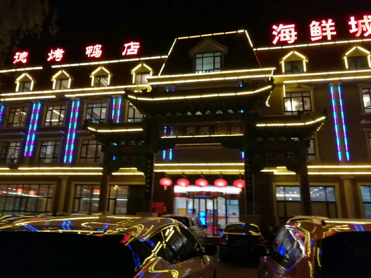 ...可以放心,绝对能承受,海鲜大咖一份168,三四个人够吃,半份烤鸭70多块钱,葱烧海参50多块钱