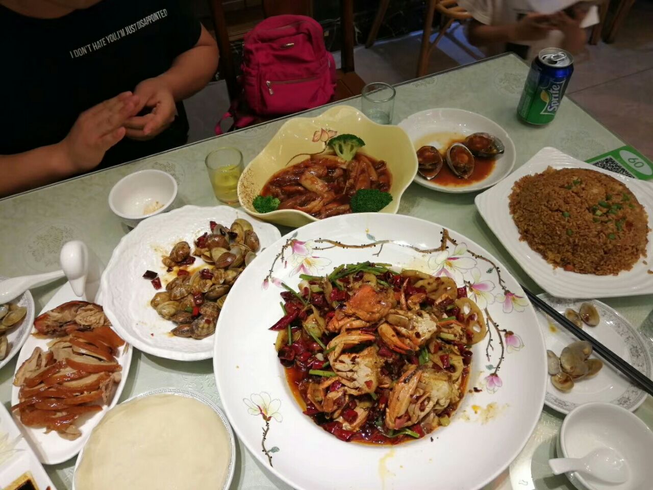 我们来北戴河旅游,住在同德附近的赤土山新村民宿区,这家饭店是民宿老板推荐的,说当地人办酒席基本都选这里,味道不错,价格也公道,不宰人。同德离民宿区几百米远,出小区往右走十分钟左右即到,面积很大,大厅里有明码标价的海鲜和菜品展示,服务员用ipad为顾客点菜。上菜速度快,服务员态度也很好,不会因为客人多就怠慢,不耐烦,速度慢什么的。我们在北戴河呆了五天,基本每天下午都是在这里吃的,还可以点外卖。菜的价格大家可以放心,绝对能承受,海鲜大咖一份168,三四个人够吃,半份烤鸭70多块钱,葱烧海参50多块钱。人多吃的话真的挺划算。还有外卖哦!