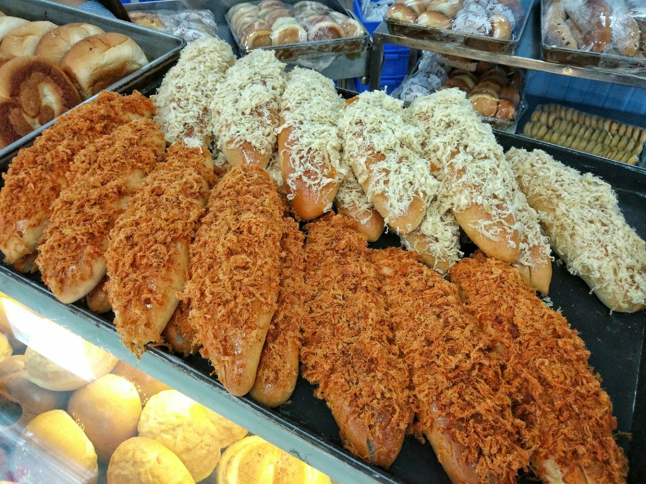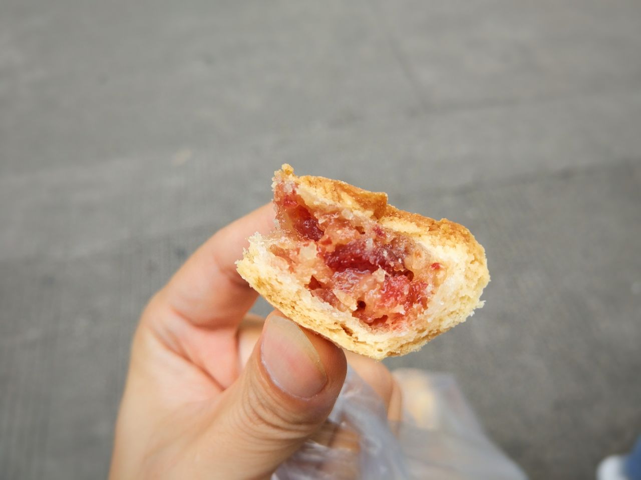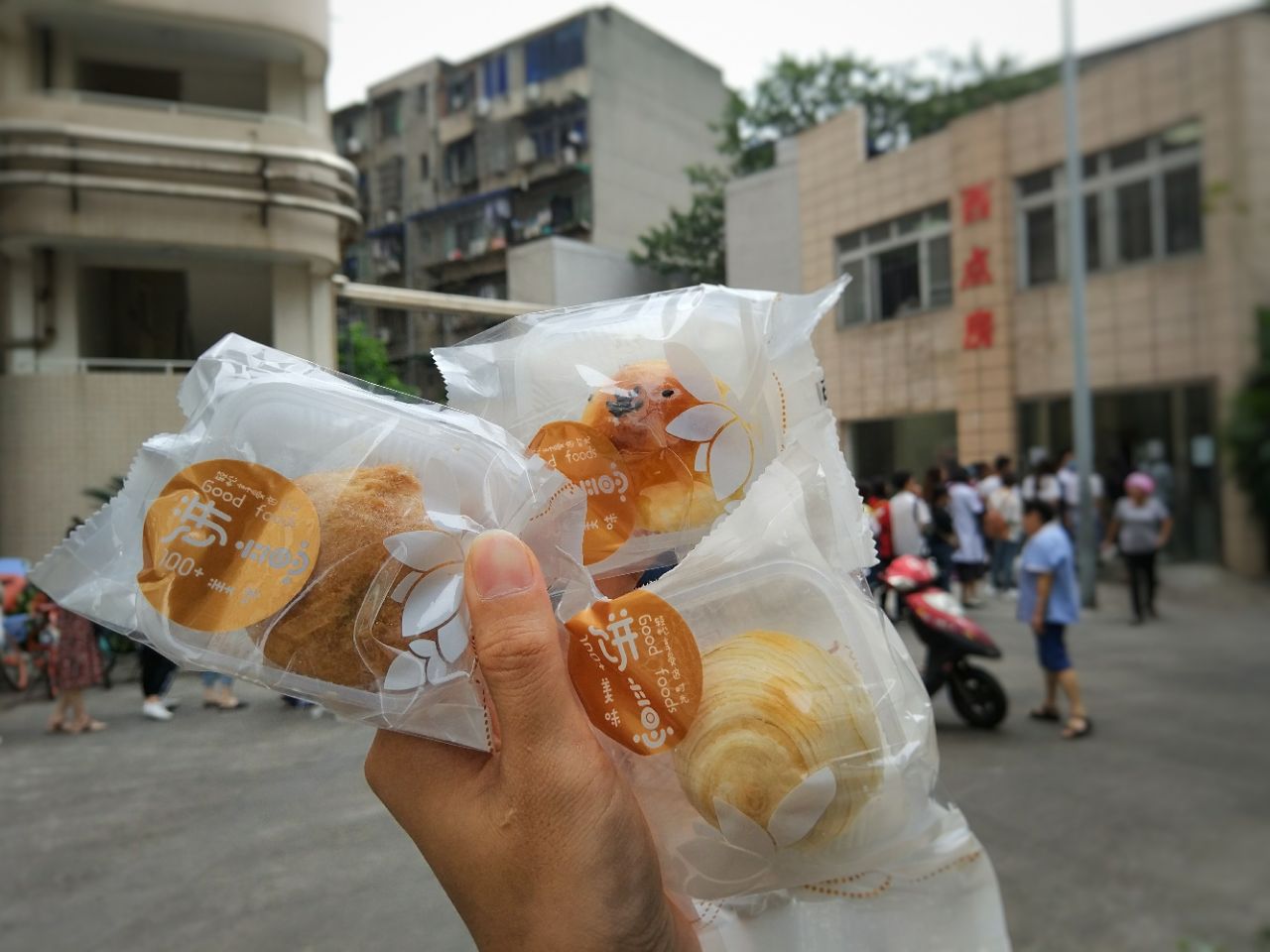 传说中 华西月饼~ 排队起码有三百多米,排队两小时,购买十秒钟~ 五种口味,完全不能选购,当天有啥吃啥,每人两个,四点半开卖,一人一袋,一袋两个,一手交月饼,一手即时刷卡,整个过程10秒完成~ 买了 拿破仑,曲奇,肉松面包,这三样无论颜值和味道,都像极了常规的宫廷桃酥铺,比较普通~ 分到的月饼有云腿月饼,蛋黄酥,龙眼酥三种~ 蛋黄酥比较非常规的特别,莲蓉与咸蛋黄都很是松软,而意外的蛋黄不是主体,重点反而是莲蓉,咸蛋黄只渲染为莲蓉而生,以蛋黄咸味及咸蛋黄香,来烘托莲蓉的香甜,并让整体丰满圆润,捏散的咸蛋黄又出奇的与莲蓉口感一致,非常棒的融合~ 而后莲蓉的味道逐渐消失,开始返现出淡淡的奶香,余味很好~喜欢他们的蛋黄酥~ 龙眼酥与蛋黄酥除了开酥皮,其余风味几乎无异~ 云腿月饼还算普通略好一点,相比儿时爱吃的云南云腿,皮厚略散,略像饼干口感,云腿香气味道浓郁略欠,甜味稍重,有咬不动的筋感~ 所以显得普通了~ 东西大部分 普通,蛋黄酥 推荐~