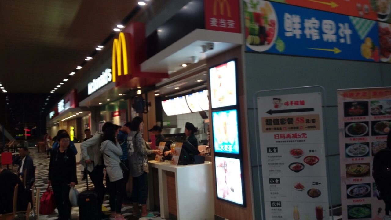 昆明市的长水国际机场虽然不是特大机场,但和其他类似机场比较,这里的饮食选择性就相对多了昆明市的长水国际机场虽然不是特大机场,但和其他类似机场比较,这里的饮食选择性就相对多了。这家麦当劳就位于机场的公共区域。