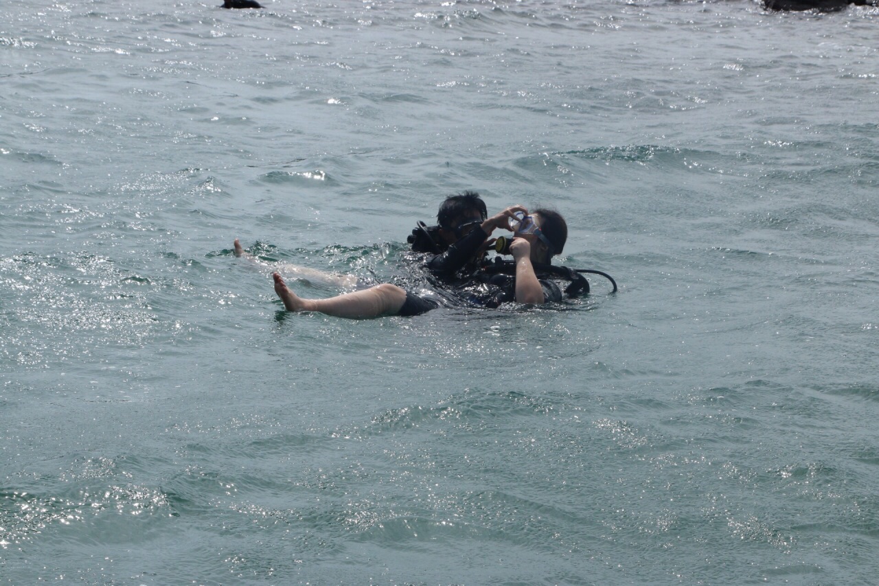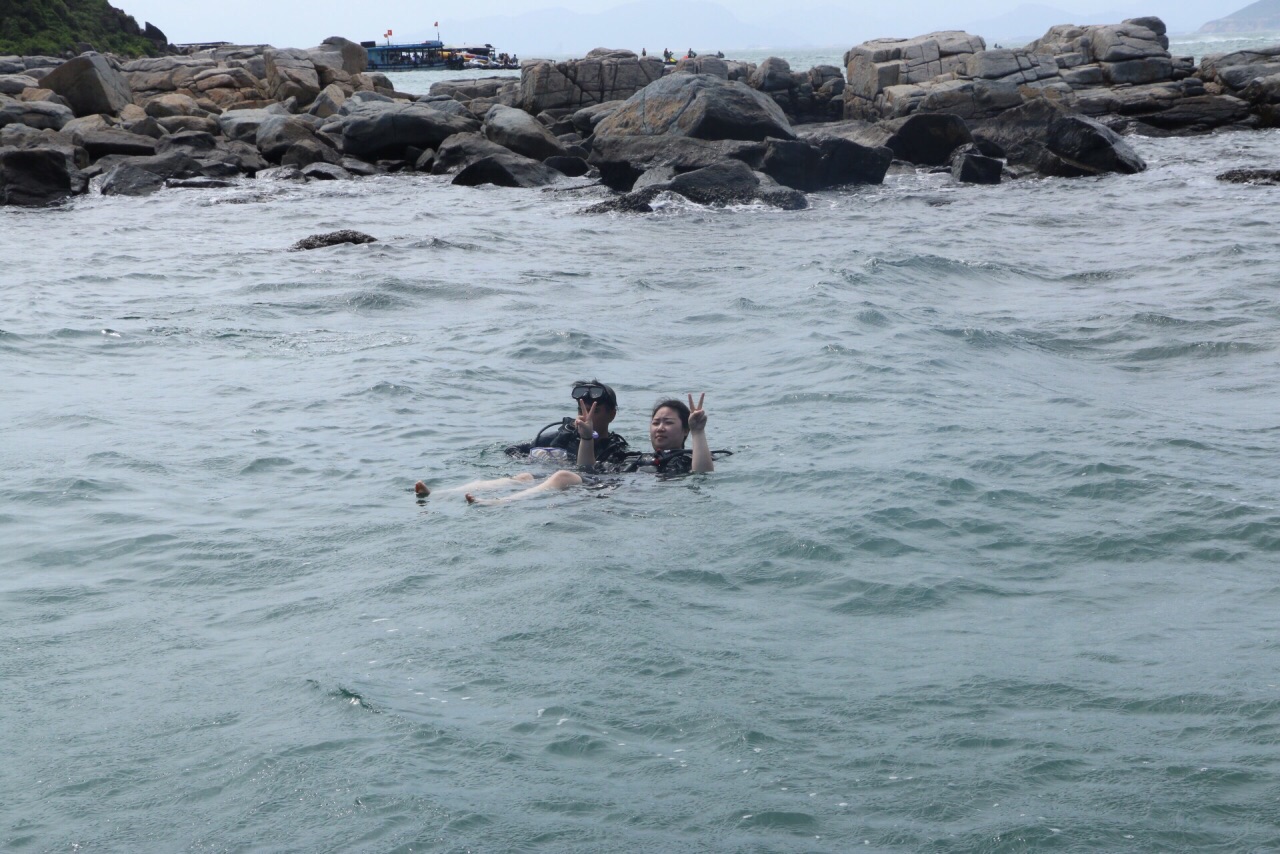 珊瑚岛又叫黑岛,这是距离市区最近的浮潜点,水流较小,可以体验浮潜或深浅项目等。 深潜需要根据教练的指挥练习呼吸,他们都是讲越南话,只是看手语理解,刚开始用嘴巴吸氧呼吸有些紧张,很快就克服。 海水不是很清澈,深潜3米左右海水已经有些浑浊,海底很冰冷,即使芽庄是热带,水底海水很冷的,感觉在下面要冻僵。 为了保护水质,下水前不能涂化妆品、防晒霜等。