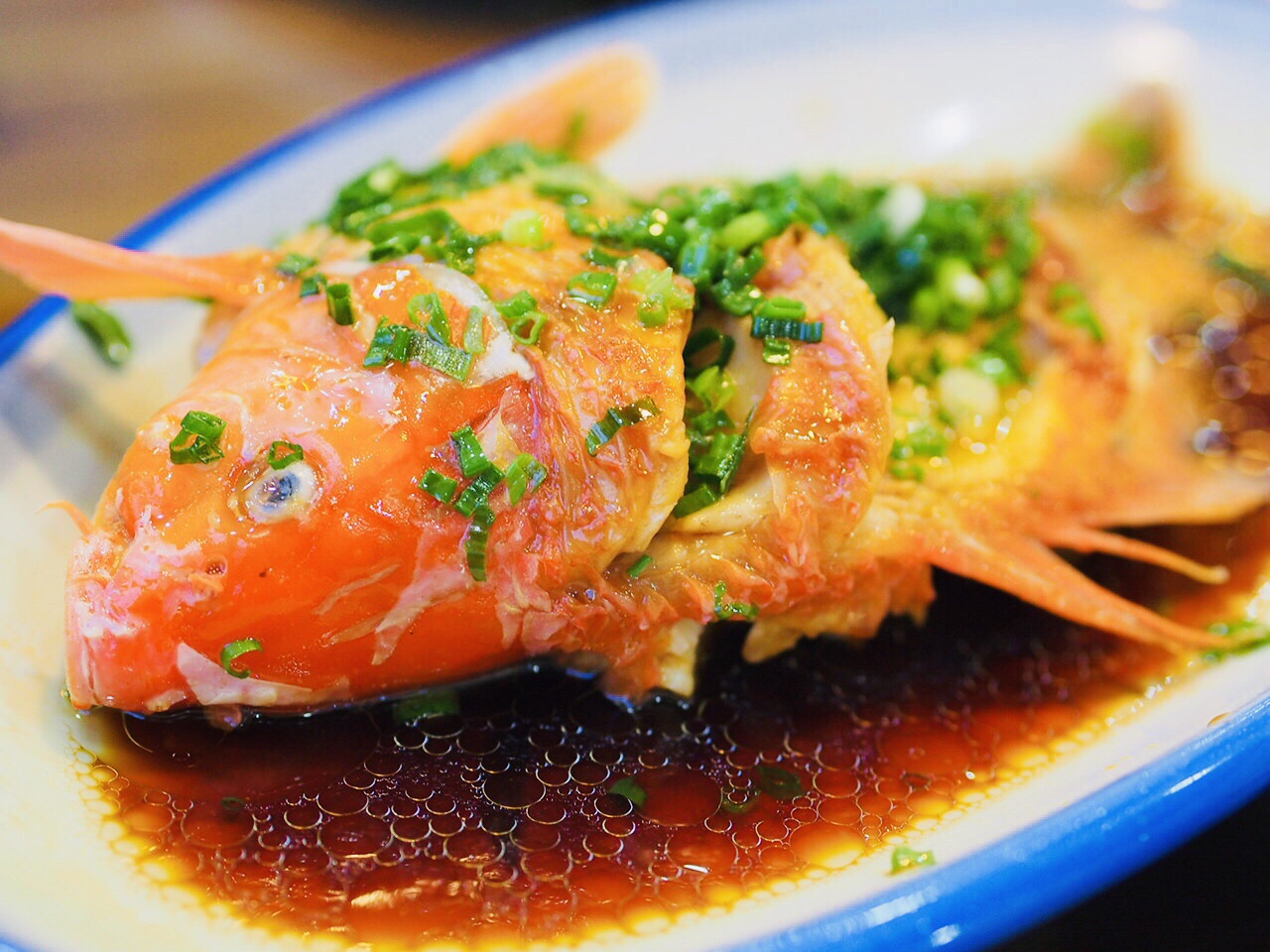 安利清蒸红鲤鱼,鱼肉是改过刀的还比较入味,非常的鲜嫩,价格不贵,50块都不到一条
