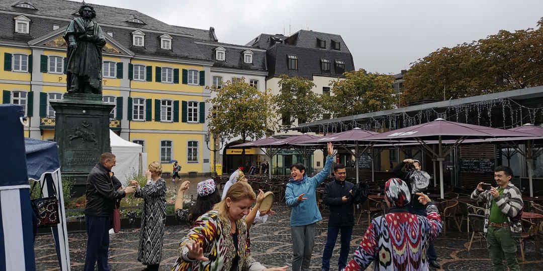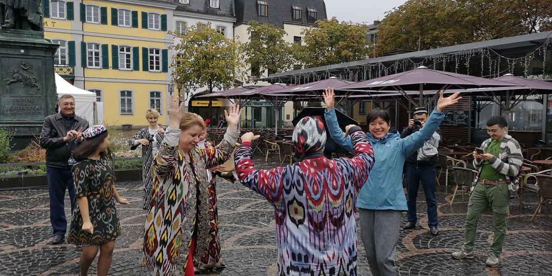 今天来贝多芬雕像广场超值,广场有类似少数民族节,众多民族的人在广场摆摊,或美食,或手工艺品,还有演唱会。我有幸被邀请一起载歌载舞。