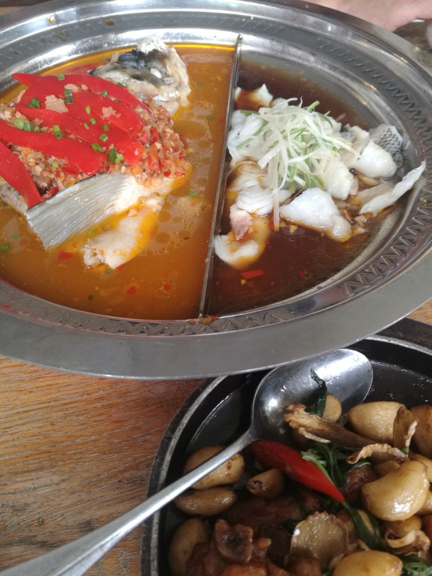 推荐花莲烹鱼,新出菜品,一边是辣的鲢鱼头,一边是清淡的鲈鱼肉片。还有三杯鸡也不错就在塘桥公园旁边,人气不算旺,菜量不大,但是味道很好。推荐花莲烹鱼,新出菜品,一边是辣的鲢鱼头,一边是清淡的鲈鱼肉片。还有三杯鸡也不错。