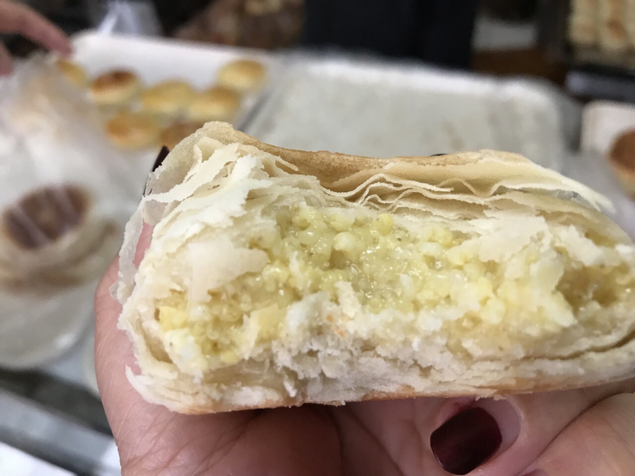 [爱心]五星好评给我的大黄米酥饼[爱心] ✨八两带我过来,跟更新街小串一样也在更新街上,这里更靠近柏威年[胜利] ✨黄米酥饼超好吃啊[抓狂][抓狂],喜粘糯宝宝的福音啊!外皮酥软里面超多的黄米馅! ✨有多好吃!这么说吧:现场先吃了两个,太好吃了[色],打包4个带回家给老妈!结果下午没忍住我又吃了两个[害羞],只好又跑去店里买了6个,第二天又跑来买了10个[害羞][害羞],明天我还去买[阴险] ✨店里还有很多口味的酥饼,月饼,老式面包等等,都是回头客!走过路过的进来看看有没有自己喜欢的那款[机智]