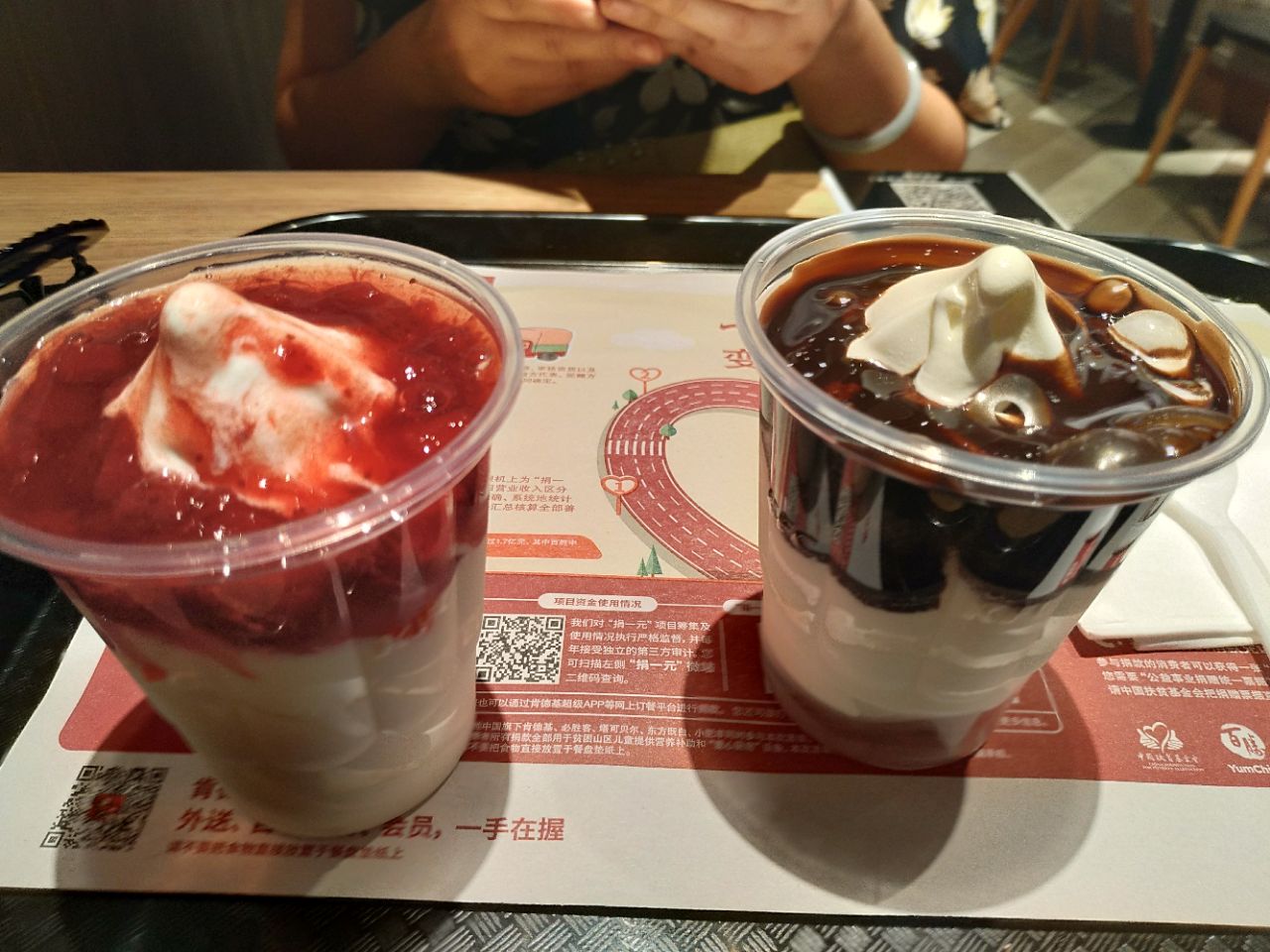 ...面的肯德基成了最热门的地方,点个餐等了十几分钟才拿到,就两杯新地,真不划算,应该多点一些好吃的这两天观看武汉网球公开赛,对面的肯德基成了最热门的地方,点个餐等了十几分钟才拿到,就两杯新地,真不划算,应该多点一些好吃的。