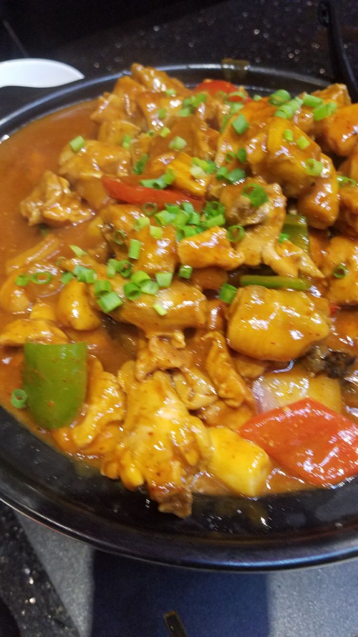 地点就在中航紫金广场内,整体氛围类似一个比较时尚的美食街,现代感很强。店内装修是偏酷感的风格,店员说近期每天都推出一个6折堡,当天的是鸡堡,里面除了鸡块还有年糕,土豆等辅料,量大,二人吃足够了,加了个生菜,合计87元。