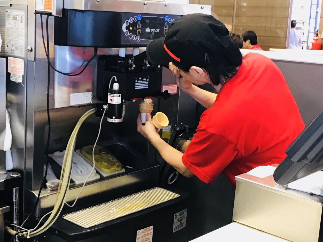 网友2018-09-25午餐时间,我和同事赶快买来尝尝。在这之前的香蕉口味冰淇淋很好吃,我现在还很怀念玉蜀黍巧克力冰淇淋是新加坡麦当劳的最新口味冰淇淋。在这之前的香蕉口味冰淇淋很好吃,我现在还很怀念。 小麦的新口味冰淇淋是限量供应,而且不是每家小麦都卖的。午餐时间,我和同事赶快买来尝尝。