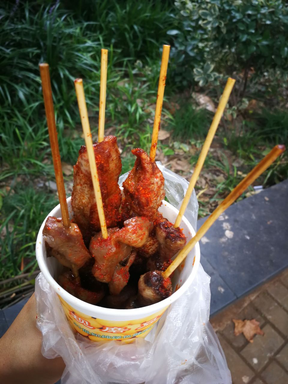 江苏路地铁站出来大概走个七八百米,最近市政在装修,外墙搭了棚子,还是很多人在排队。有情侣有下班的人,还有爷孙两,感觉很多本地人。鸡胗鸡心感觉很一般,里脊肉超级惊艳,第一次吃到这么好吃的烧烤里脊肉,一般的里脊肉很干,这个肉厚,多汁。如果在杭州我可能会隔三差五去吃。