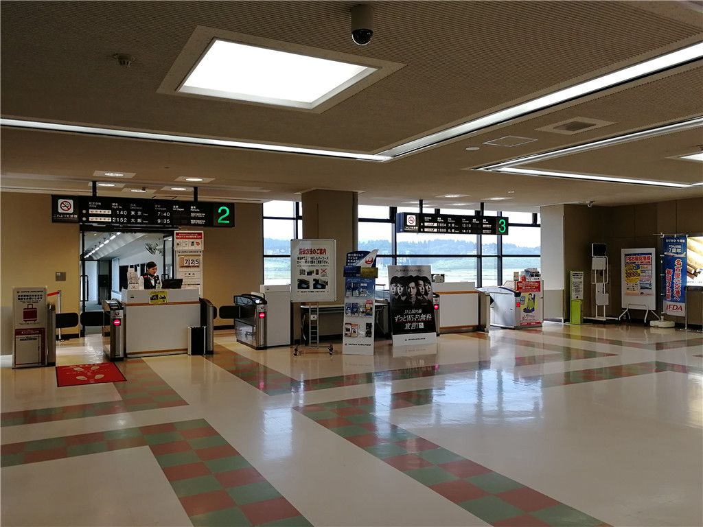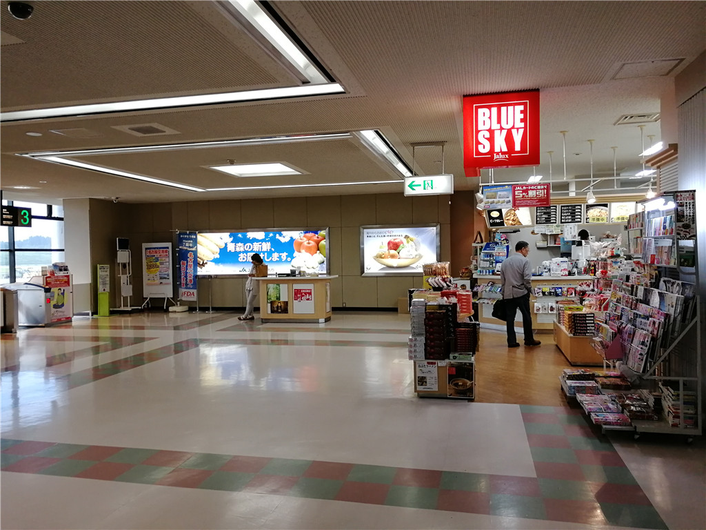 距离青森市区不远,十来分钟车程可到,规模真的很小,而且设施并不现代化看得出有些年头,但竟然也经营国际航班,而且维护也相当好,秉承日本一贯的干净。值机区旁边有条小型商店街,但进入了国内候机室除了便利店就无其他商业设施,登机口还没有液晶显示屏,很怀旧的感觉。