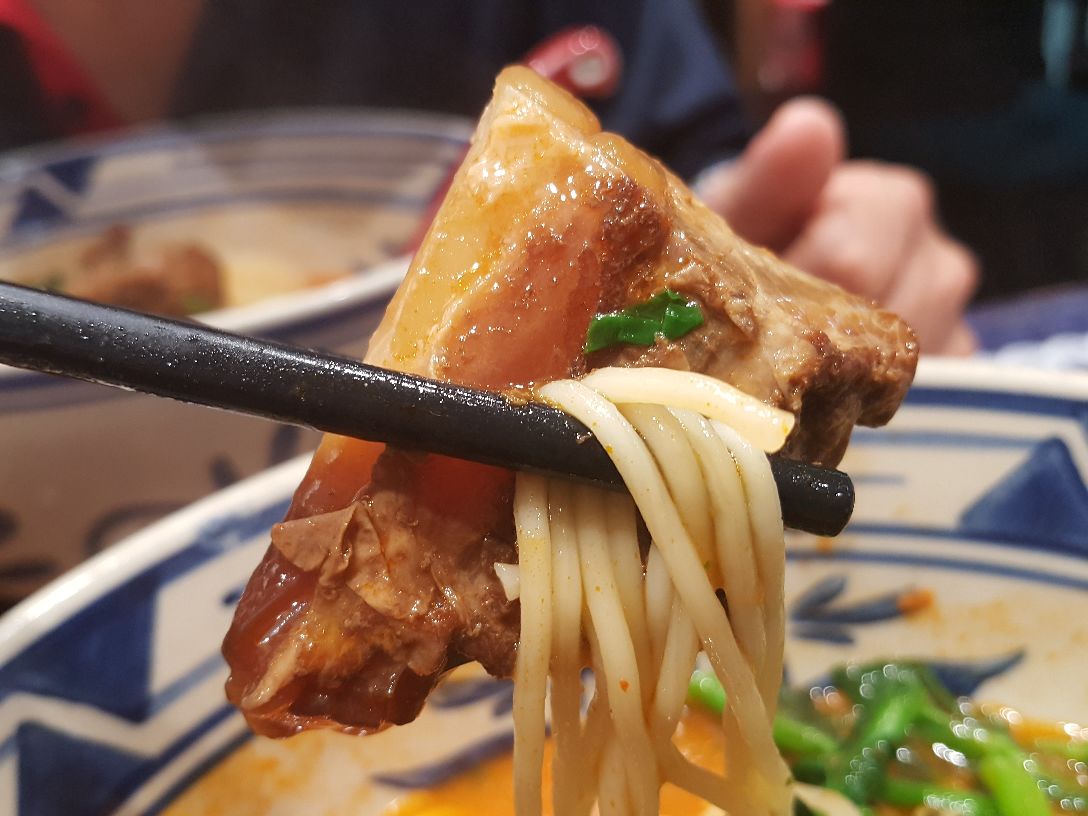 让汤水的味道更加充分地渗透到面条里,然后惬意地送入嘴里,面条柔软而不酥烂,汤水色浓味鲜,咬一口猪软骨