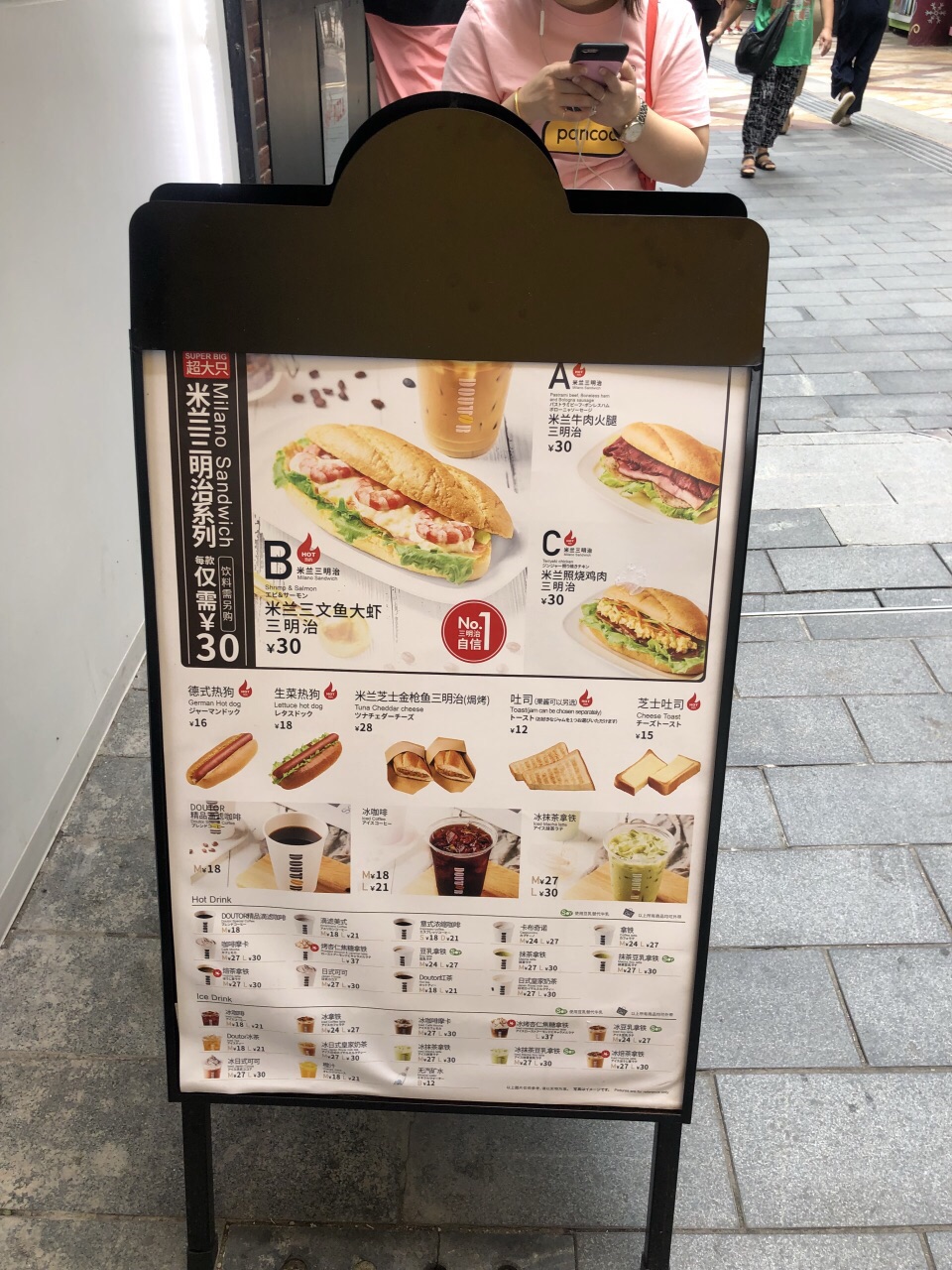 日本有名的国民咖啡终于落户上海,在日本的时候看到过,排队也是名副其实地多,坐享吴江路南京西路口绝佳好位置,竟然还有露天位,中午吃个饭吹吹风很享受,「烤杏仁焦糖拿铁」听了服务员说的要了热的,杏仁味浓郁,咖啡也很香,我点了「抹茶豆乳拿铁」少冰,日本以抹茶为名,肯定不会出错「牛肉火腿三明治」两个人share了吃,很十足,很裹腹,餐后再来块巧克力千层蛋糕,巧克力味浓郁,一层层几乎都是巧克力,吃得好满足,这里是先买单后取模式,餐盘也很好看,下次再来尝试其他口味