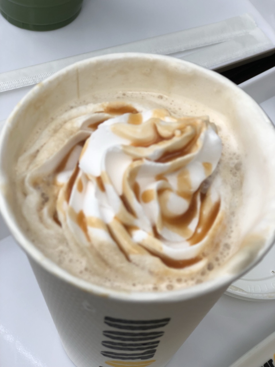 竟然还有露天位,中午吃个饭吹吹风很享受,「烤杏仁焦糖拿铁」听了服务员说的要了热的,杏仁味浓郁,...