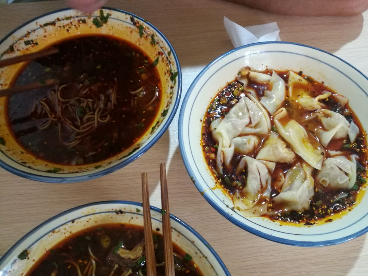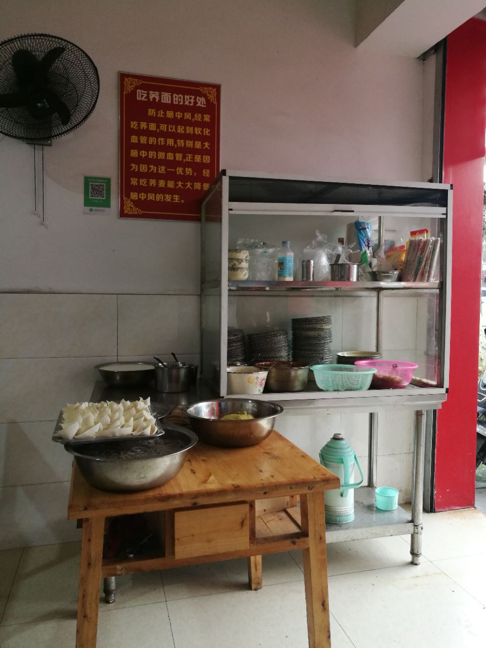 第二次去吃了,因为第一次去吃觉得很好吃,多吃粗粮对身体好,这次来青城山就直接去吃荞面。 [环境]门面比较小,但是很干净。对面走路一分钟就到著名的张醪糟。 [服务]老板是两口子,很热情勤劳,也很健谈。 |红烧牛肉荞麦面^牛肉很大坨,软硬适中,而且给了好几坨。红油很香,各种配料芹菜,葱,酸菜很足。不会特别辣,很喜欢。 |红油抄手^老板推荐说刚刚包的,都是瘦肉。配上他家的辣椒真的很香很好吃。吃完老板才告诉我干拌的糖醋味抄手是他家一绝,只有下次来了。 这家就是意外之喜,强烈推荐到青城山旅游的人来尝尝。