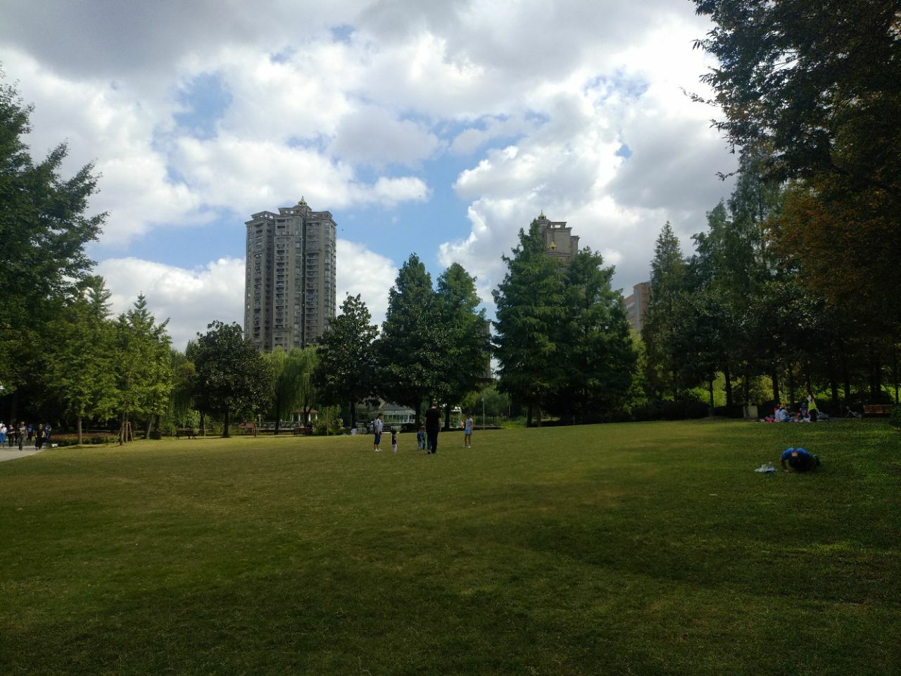 公园中间有一个不算很大的湖。公园里还有一个大草坪。湖中间有一个圆形的岛屿。人很少,环境似乎还不错最近办公就在附近。中午的时候就去逛了一下。人很少,环境似乎还不错。公园中间有一个不算很大的湖。湖中间有一个圆形的岛屿。面积蛮大的。可跳广场舞。公园里还有一个大草坪。