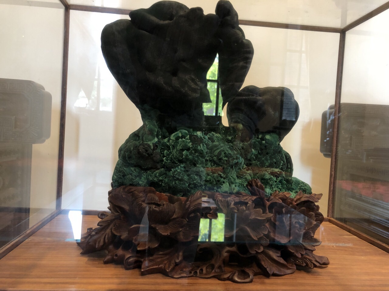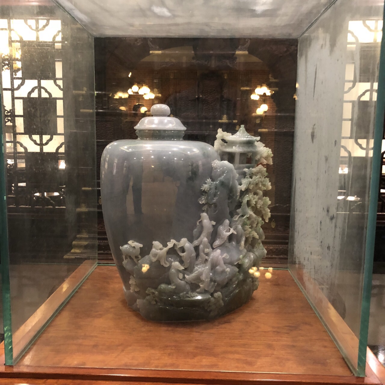 中午朋友开车带过来,凯旋路桥转下,沿苏州河边要再开上一点时间。其实在苏州河以北。请了之前将上海音乐厅平移的团队过来的,也平移了据说有几十米。根本没想到,在上海都市中心还有如此雅致的庭院。 据说老板投资了数亿,耗费多年时间才打造成这样局面。我们是在一楼包房里吃的饭,乳鸽、流沙包、春卷、小笼等是粤菜风格。艇仔粥里有多枚大虾。感觉光吃一碗粥就饱了。其余也都很好吃。 当然个人觉得来此主要还是体验里面的环境。卡座在B1层。也一层层地参观过了。里面也有小型会议室、品酒室等功能区。 毎层都陈列了许多宝贝,值得细看。有一块镇宅的大玉石可能现在价格上亿元了。 服务员上菜及更换骨碟等都非常及时。体验滿意。