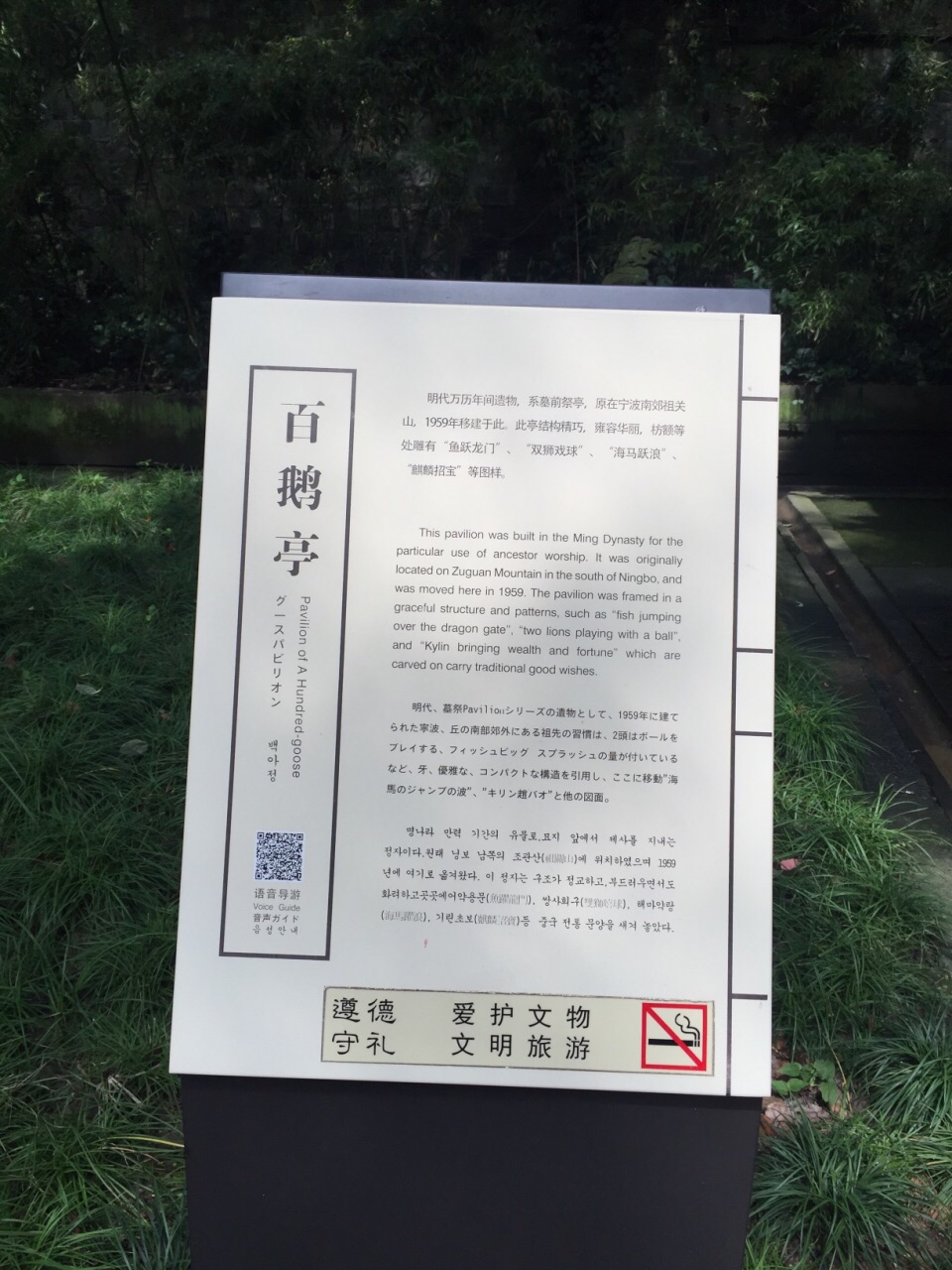亭上有百多只鹅,姿态不一,形象生动,是难得艺术作品,有一定的观赏价值百鹅亭为明代遗物,原不属于天一阁博物馆,后移建于此,为古代祭亭。亭上有百多只鹅,姿态不一,形象生动,是难得艺术作品,有一定的观赏价值。