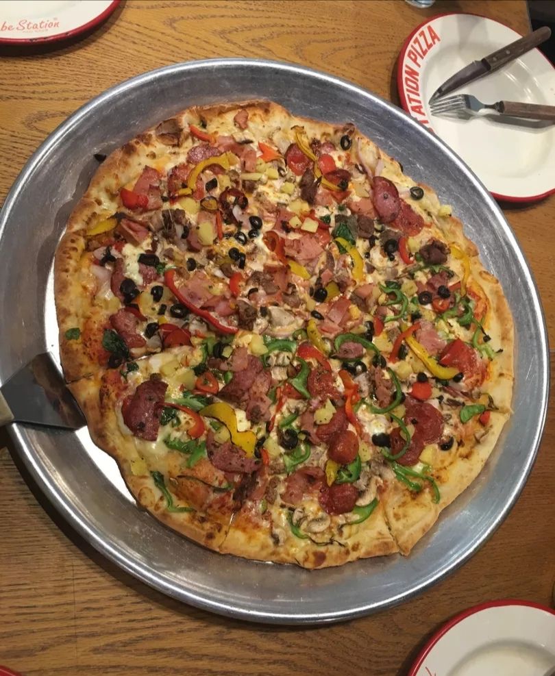 网友2018-10-02服务也不错。点了一个中号垃圾桶披萨和一个小号夏威夷,披萨可以双拼,中号的很大店面分两部分,里面有三张大桌子,每张桌子可以坐六七个人。点了一个中号垃圾桶披萨和一个小号夏威夷,披萨可以双拼,中号的很大。金枪鱼蔬菜萨拉料也很足,饮料都是瓶装果汁的味道。服务也不错。