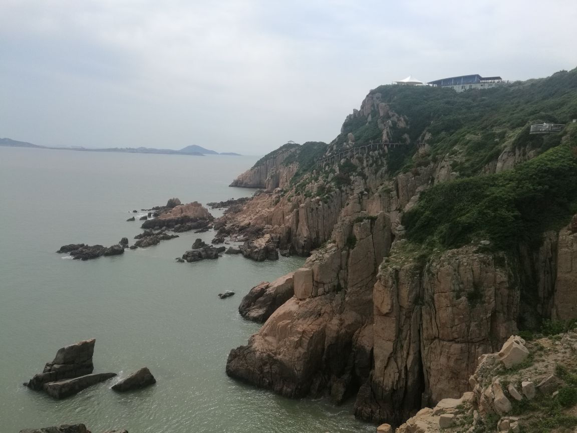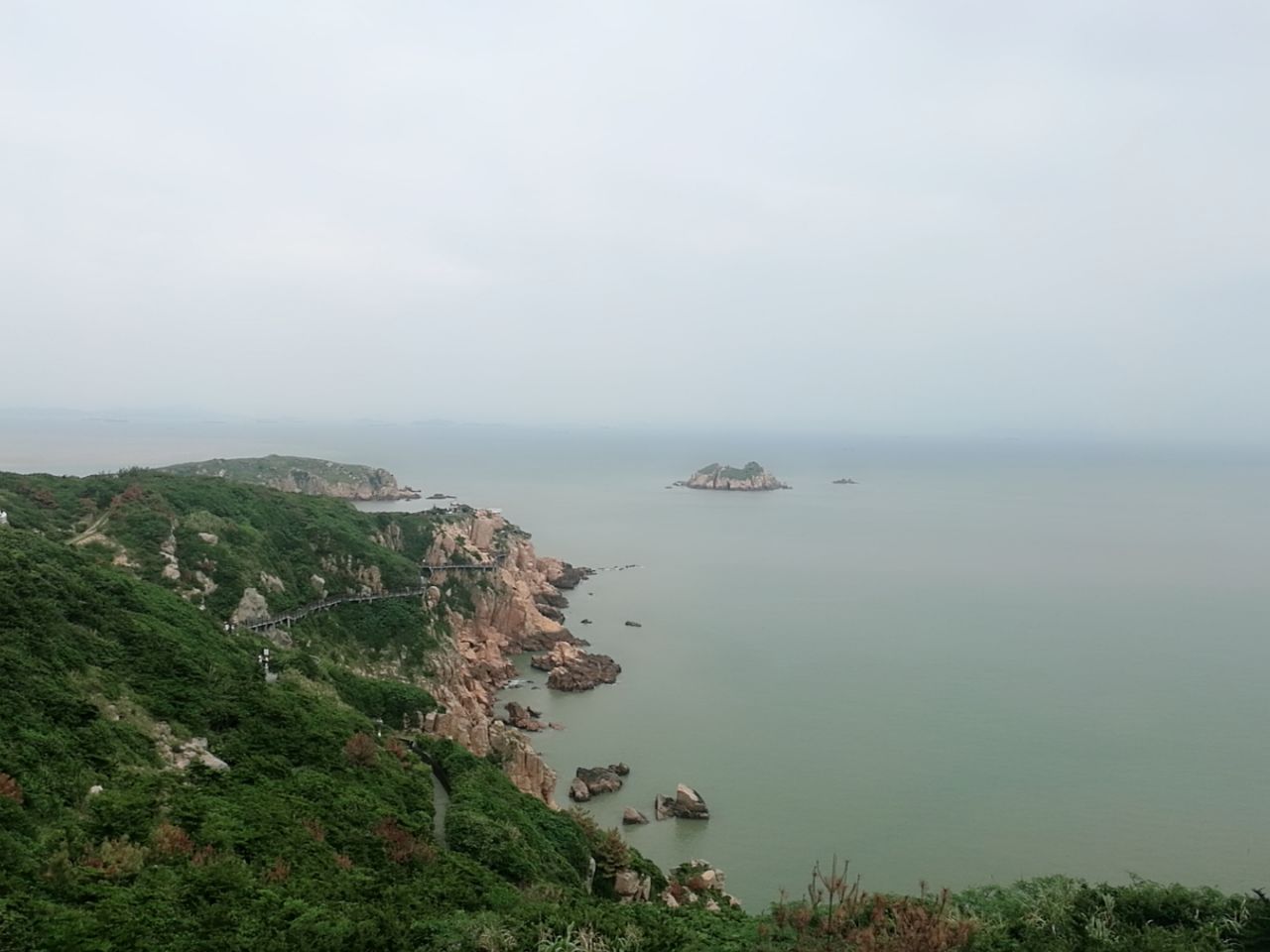 和尚套景区属于嵊泗列岛风景名胜区之一,位于泗礁本岛最东端,当地民宿老板推荐说是观赏海上日出的最佳处,由于我们去的时候查了天气多云,就放弃了凌晨登山赏日出。 9月份的嵊泗岛海水呈微微淡蓝,洗去了我对东海的“泥浆色”印象。 和尚套景区傍山建栈道,脚下就是悬崖峭壁、奇礁怪石、海浪拍岸,走的时候千万不要一直往下看,有恐高的人可能会出站眩晕(我就是这样。。。)走得过程中,你会发现下面有海钓的人,不得不佩服钓鱼人士的勇气!