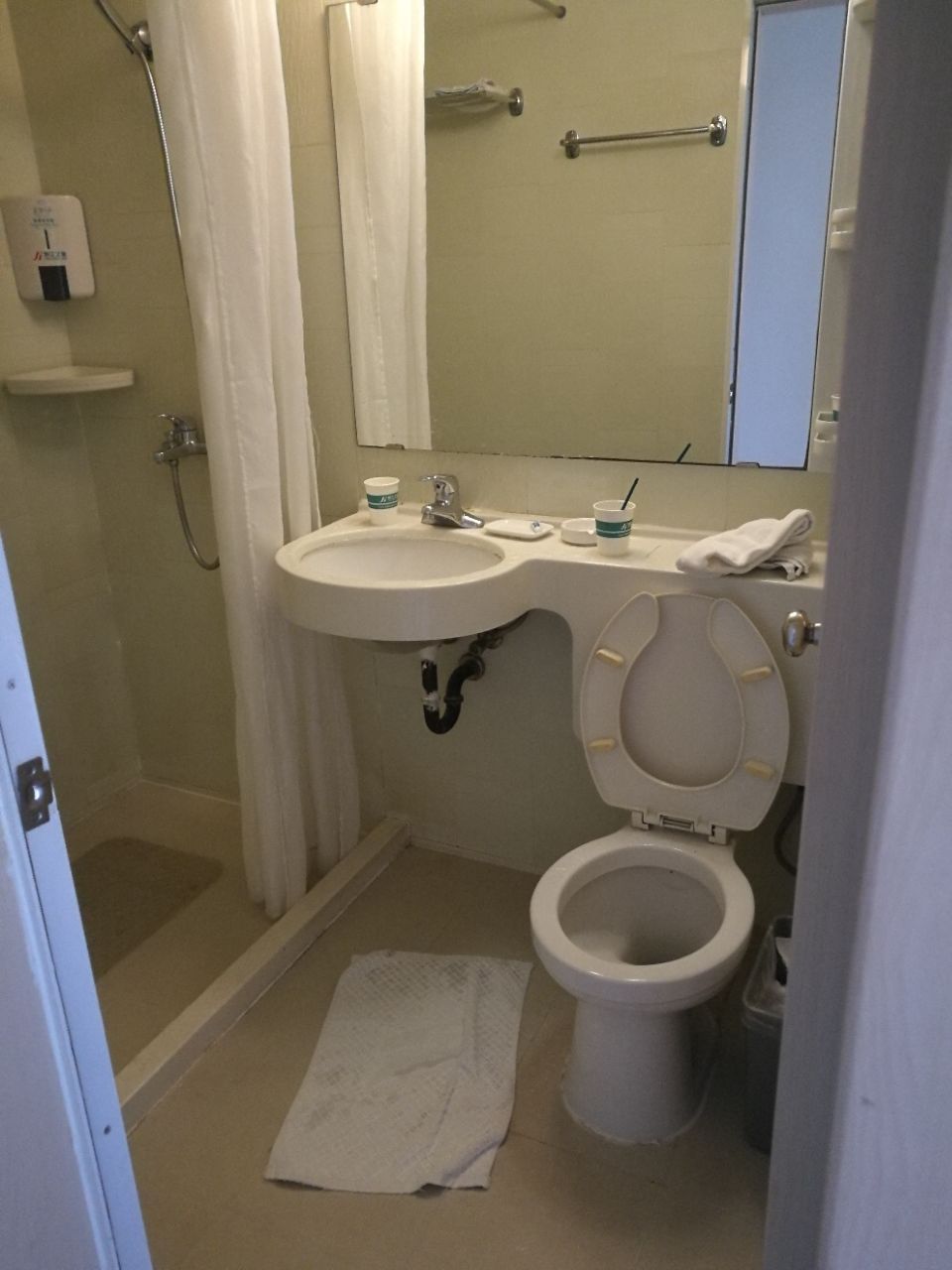 解放路这个酒店算一般,住九楼,比较安静,洗手间有点小,只有牙刷牙膏杯子,没有梳子,沐浴露洗头水...解放路这个酒店算一般,住九楼,比较安静,洗手间有点小,只有牙刷牙膏杯子,没有梳子,沐浴露洗头水是一起的,热水充足,床单有点脏。