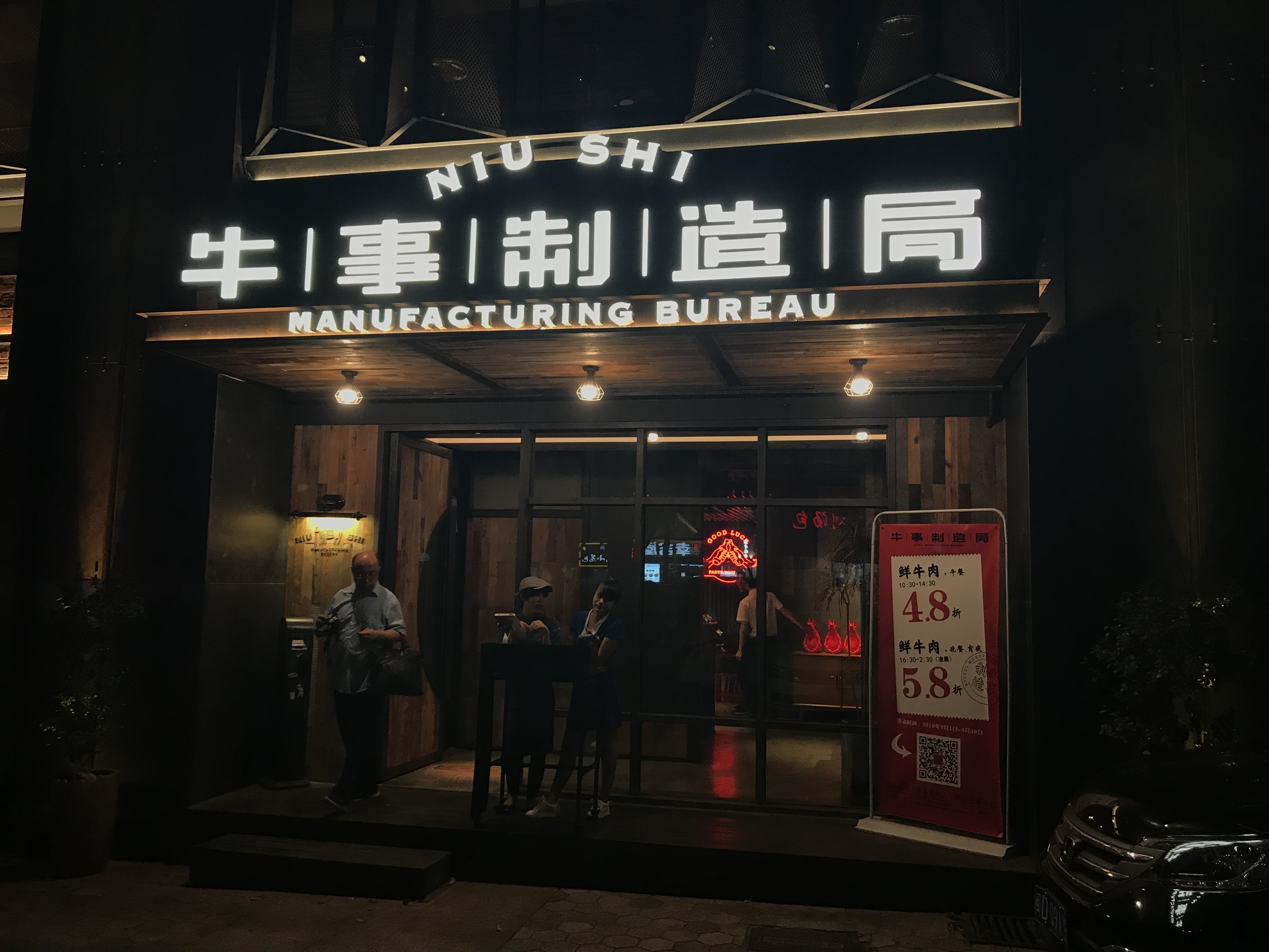 牛事制造局,精于牛事,专于牛事 店面较大,且宽敞明亮,每个座位上都配有一个排烟筒,非常贴心。 酱料种类多样,可随意搭配。 鸳鸯锅底可以满足不同口味的人的需要。辣锅也不会太辣,更多的是辣中带香。 手切牛肉都是现点现切的,有吊龙,匙柄,匙仁,五花趾等等等分别来自于牛身上不同的部位。每种肉只需要烫几秒,肉质鲜嫩,有嚼劲。 除了牛肉,手打牛肉丸也非常的棒,超级Q弹。 吃完肉当然得来点素菜解解腻,玉米清甜可口,豆腐软糯香滑,很不错。 服务也还不错,整体吃的很开心。