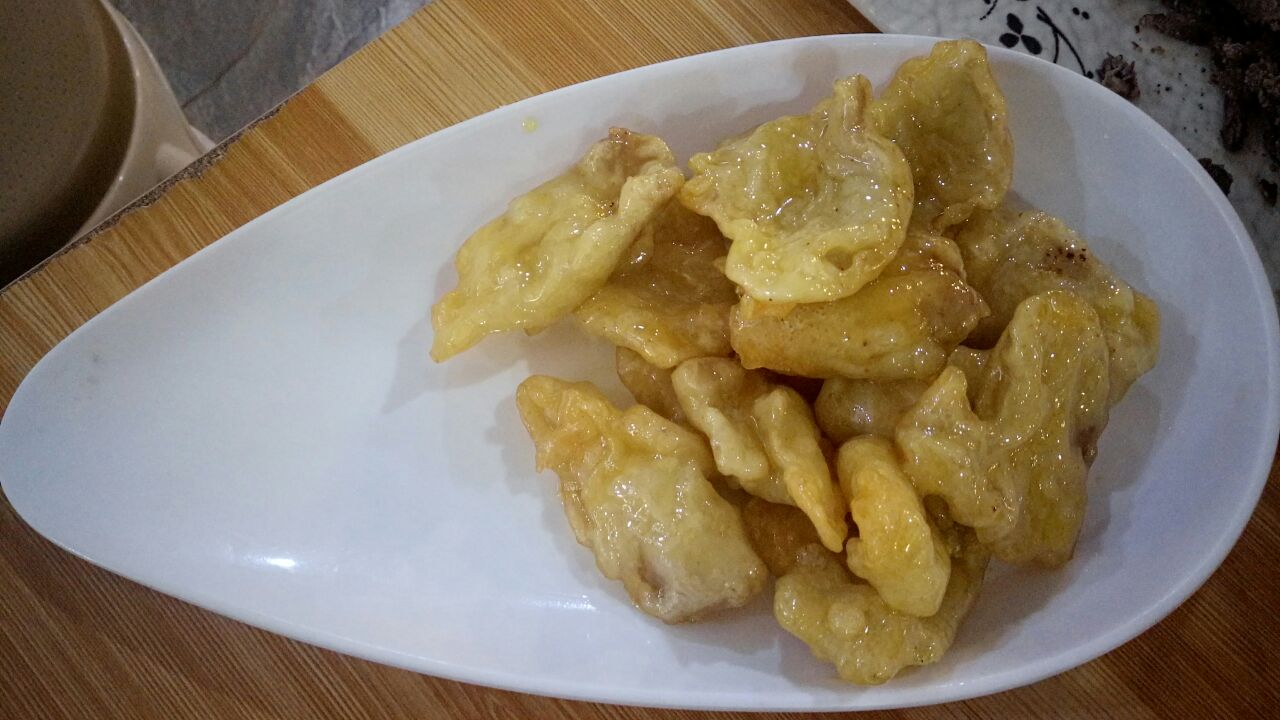 路过葫芦岛想去吃个饭,下高速查到了这个店,“又见炊烟”名字很有个性。下午一点四十五了还要等位,还好时间不是太久。快第到了的时候就可以点餐。 我们两个人点了四个菜,菜量不大,价格比较实惠。 羊腿吃着像是炸的,肉质很好。 锅包肉有点像我们平时吃的糖醋里肌,酸甜口。 鲍鱼茄子是服务员强烈推荐的,按鲍鱼收钱,大约15一只,两只起。茄子炖的很烂,汤调的可口。 水果捞里有苹果、桔子、香蕉、哈密瓜等,满满的一小碗,浇着酸奶还满好吃的。