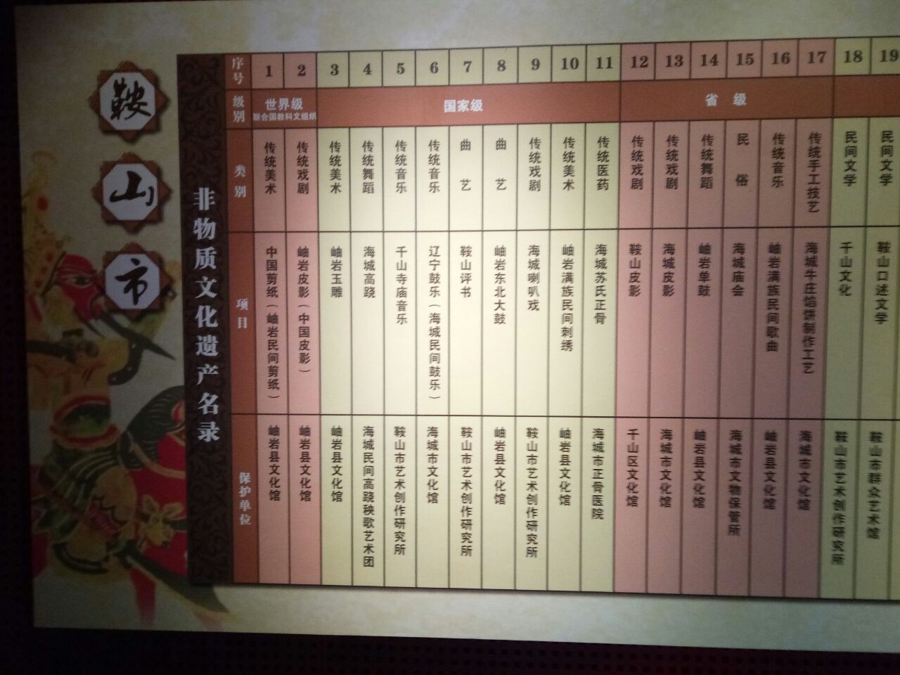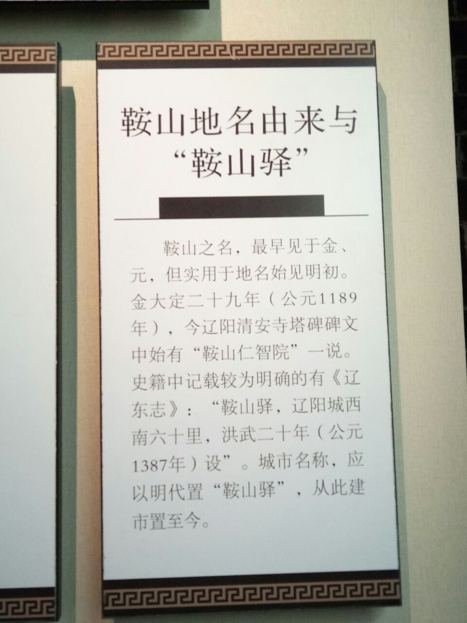 这次赴鞍又抽时间细看了一遍,有一定价值,规模不大;鞍山市管辖范围内文物在海城、岫岩居多,仙人洞遗址、析木城石棚和岫玉是代表性的,市区南边的鞍山驿堡算有历史;非物质文化遗产介绍的也不错,可以再增加些地方性民俗内容。