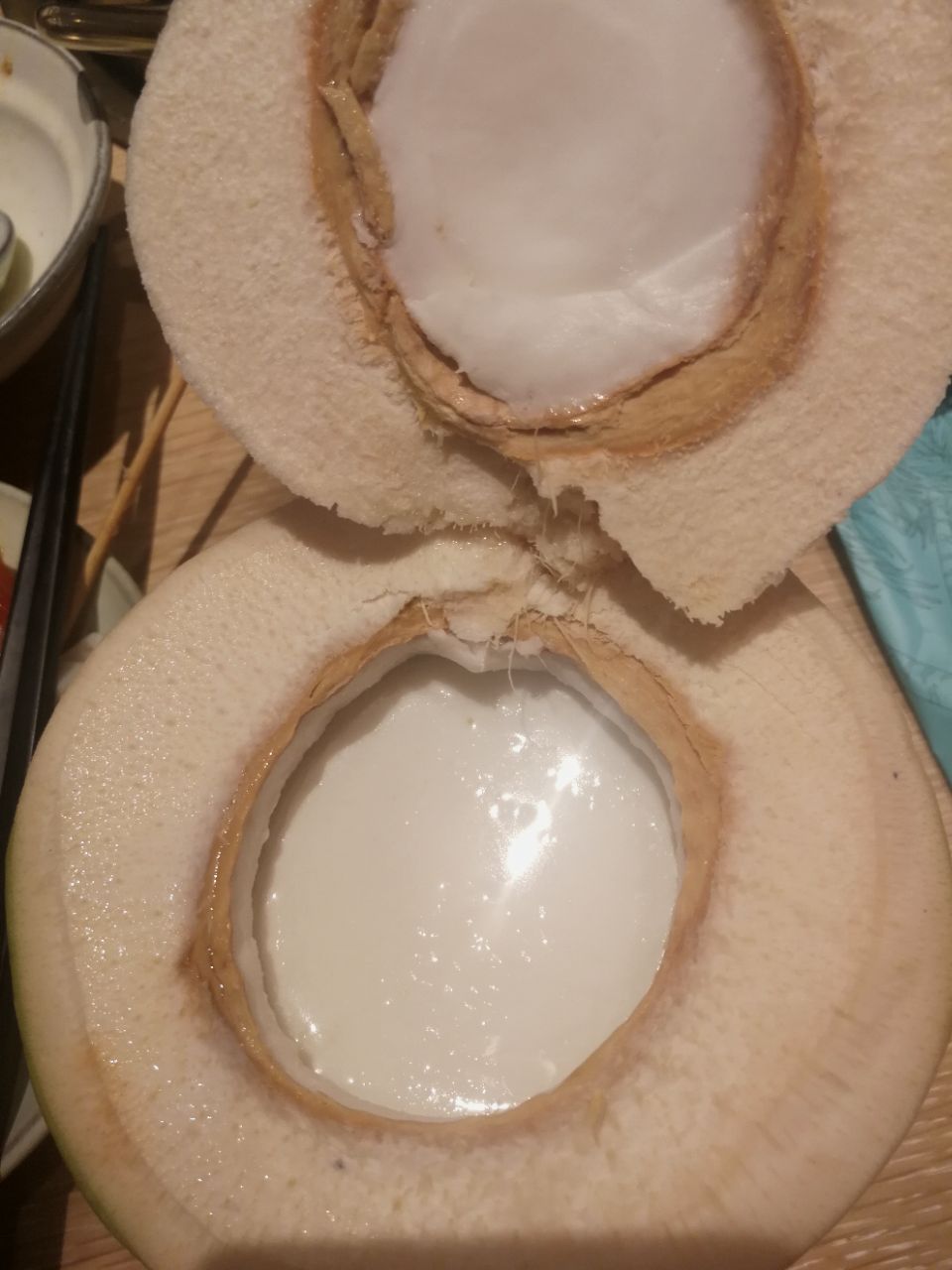 国庆长假不去外地添堵,就在上海吃吃吃。 锅底是双拼,一个椰汁,一个花胶,放入文昌鸡后一个香甜,一个浓郁,各有风味。 肉肉点了雪花牛肉和黑毛五花肉,稍微烫一下就好了,嫩嫩的。 腐皮鱼籽,这个挺特别的,口感上像是鱼豆腐里加入鱼籽,咬起来脆脆的,很有嚼劲。 椰子饭,海南特色,放在荷叶上摆在蒸笼里,清香不容错过。