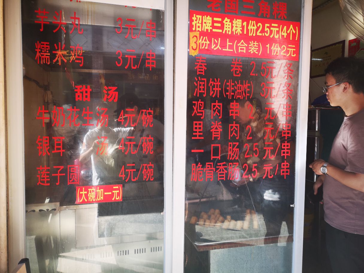 网友2018-10-05排队一个小时,只吃了五分钟。这是漳州小吃示范街其中一家小吃店-老国三角粿这是漳州小吃示范街其中一家小吃店-老国三角粿。站在街口老远就看见了。排队一个小时,只吃了五分钟。慕名而来,点了一份三角粿2.5/4个,一份春卷2.5/个,划算