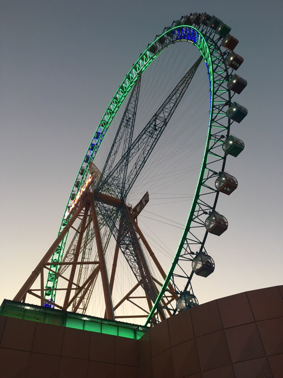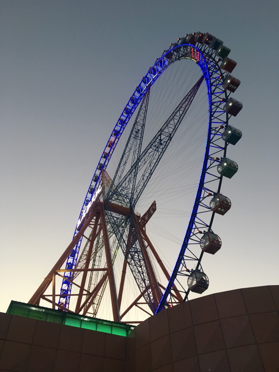 110米高的摩天轮,值得去体验一下,最好晚上去,看看灯光秀