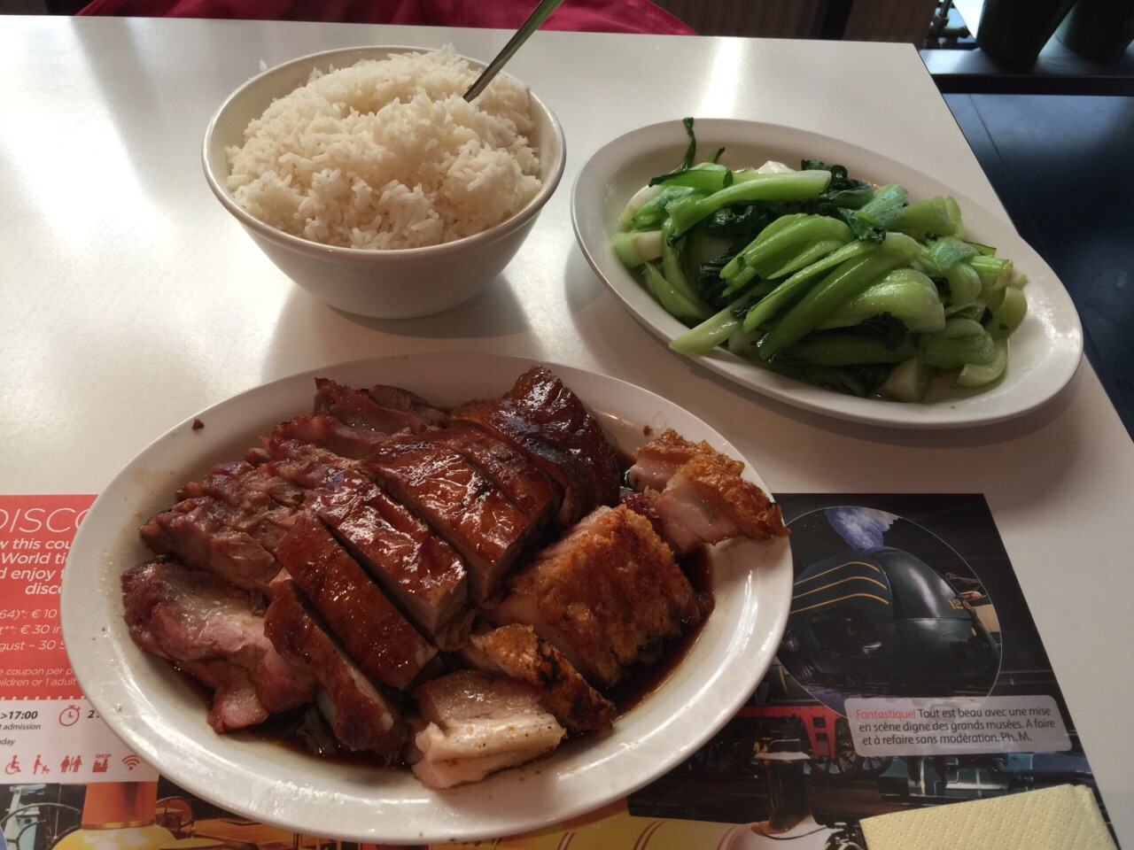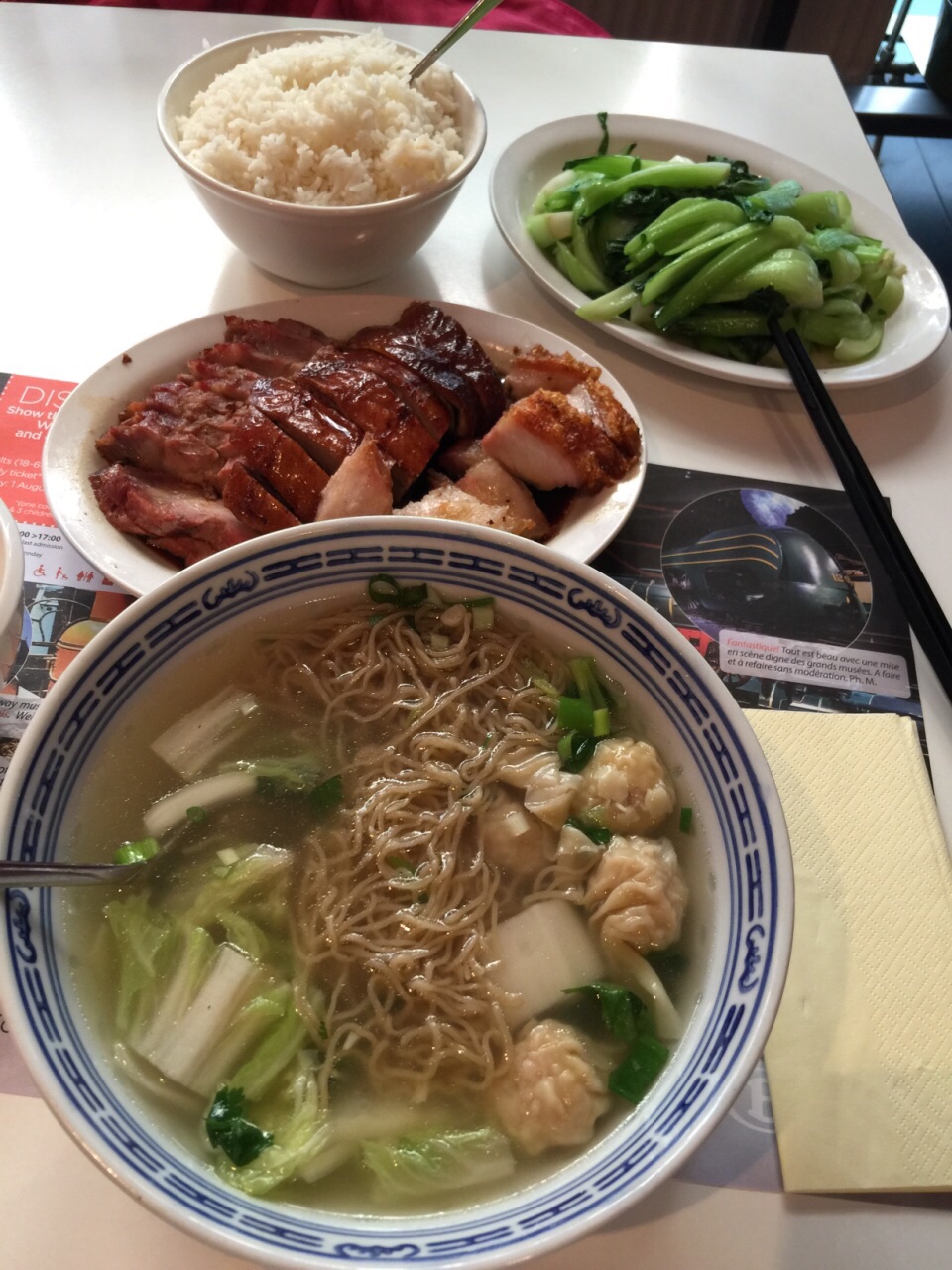 这家是正宗的广东人开的烧腊饭店。叉烧,烧鸭,烧肉之类的烧腊做的很好吃。而且点菜送饭,量都超大,根本不需要再点主食。我比较喜欢云吞面配烧腊,所以我还点了云吞面。不过云吞面的味道很一般。因为云吞和面都不是新鲜的纯手工做的,而是冰冻的那种,所以口感不好。国外蔬菜你就更别指望新鲜了。这家店开在唐人街上,当地华人和老外来吃饭的很多。没看见什么旅游团来吃饭。小店不大,按照中国晚饭时间六点去基本有位子。七点半之后就坐满了。