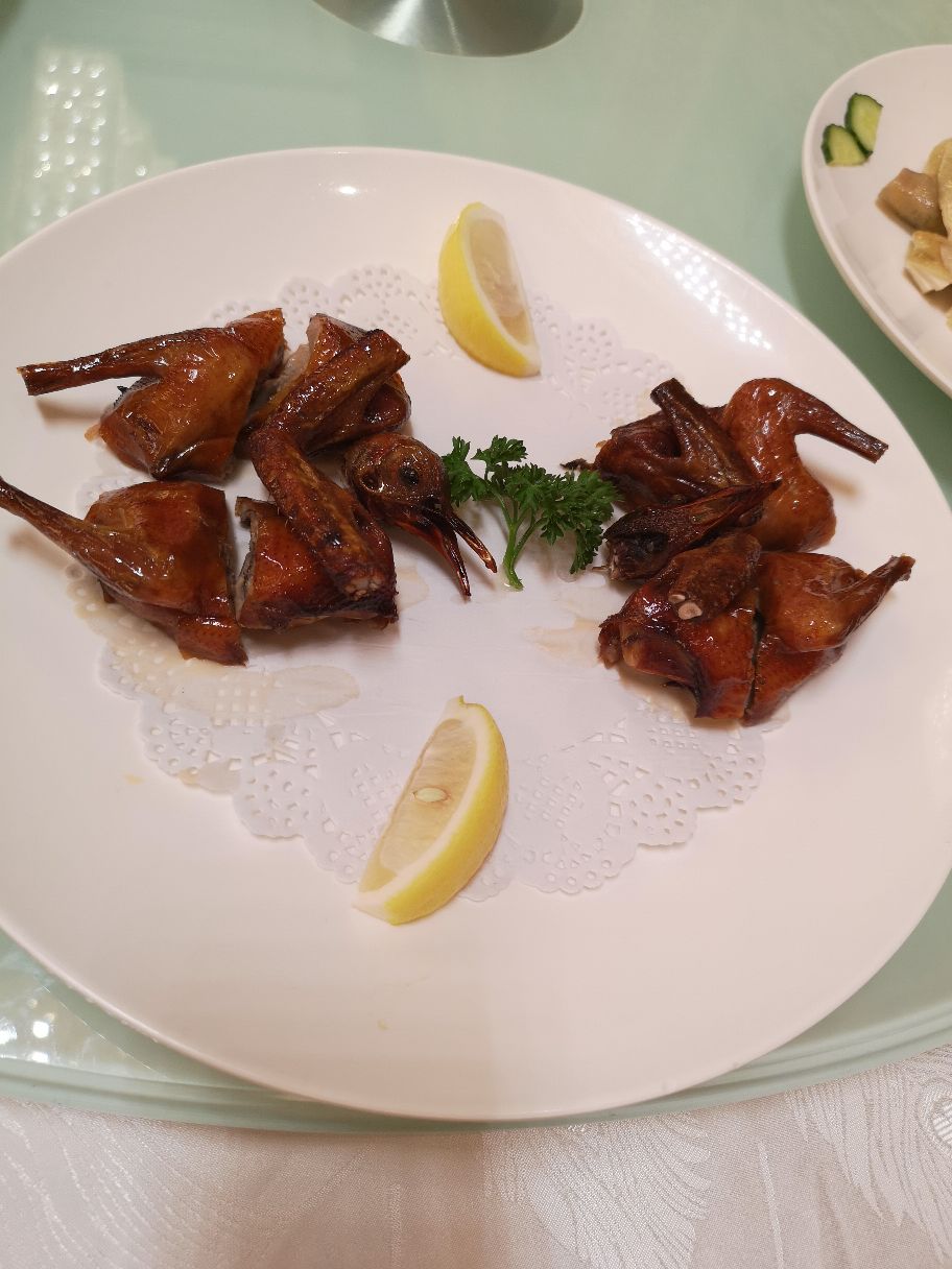 酒楼两点就下班,我们去到已经一点多了,菜牌都没来得及认真看就赶紧点菜了酒楼两点就下班,我们去到已经一点多了,菜牌都没来得及认真看就赶紧点菜了。那个大厅真够大的,环境是不错的,可能由于厨师要下班吧,上菜可快了,白切鸡的鸡一般般吧,其它都不错。乳鸽有点儿小~~芋头感觉炸过头了
