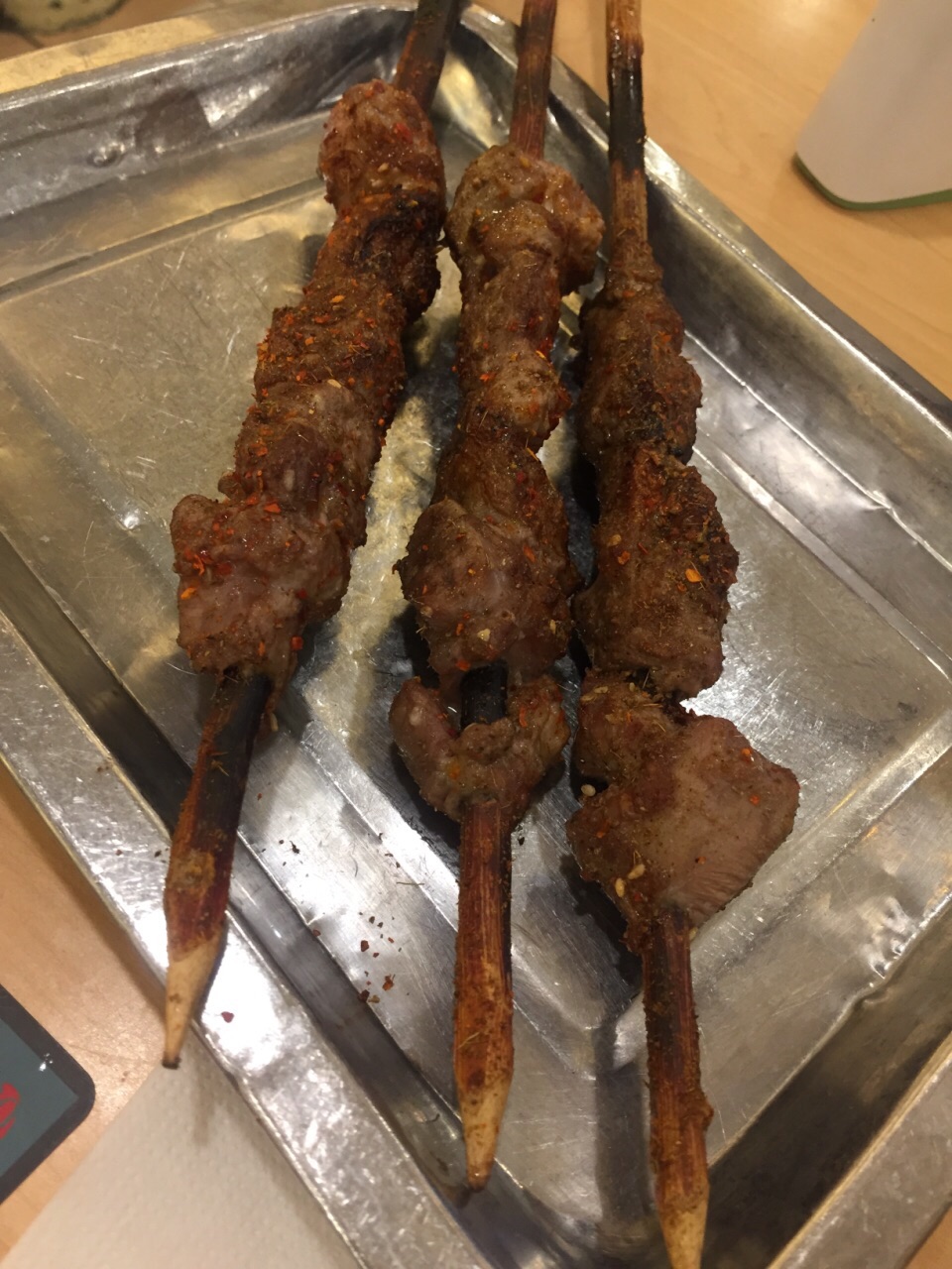 好久没吃牛肉拉面了,这家店开了很多年了,今天来这儿吃拉面,发现价格小贵了,点了三个红柳羊肉串,45元