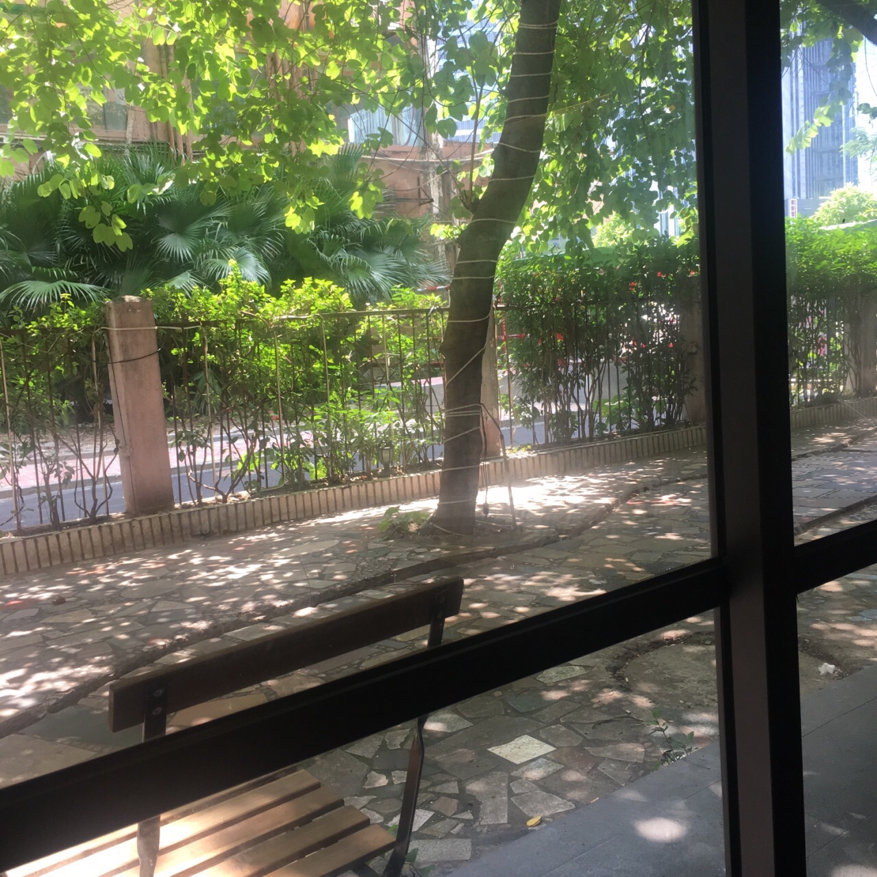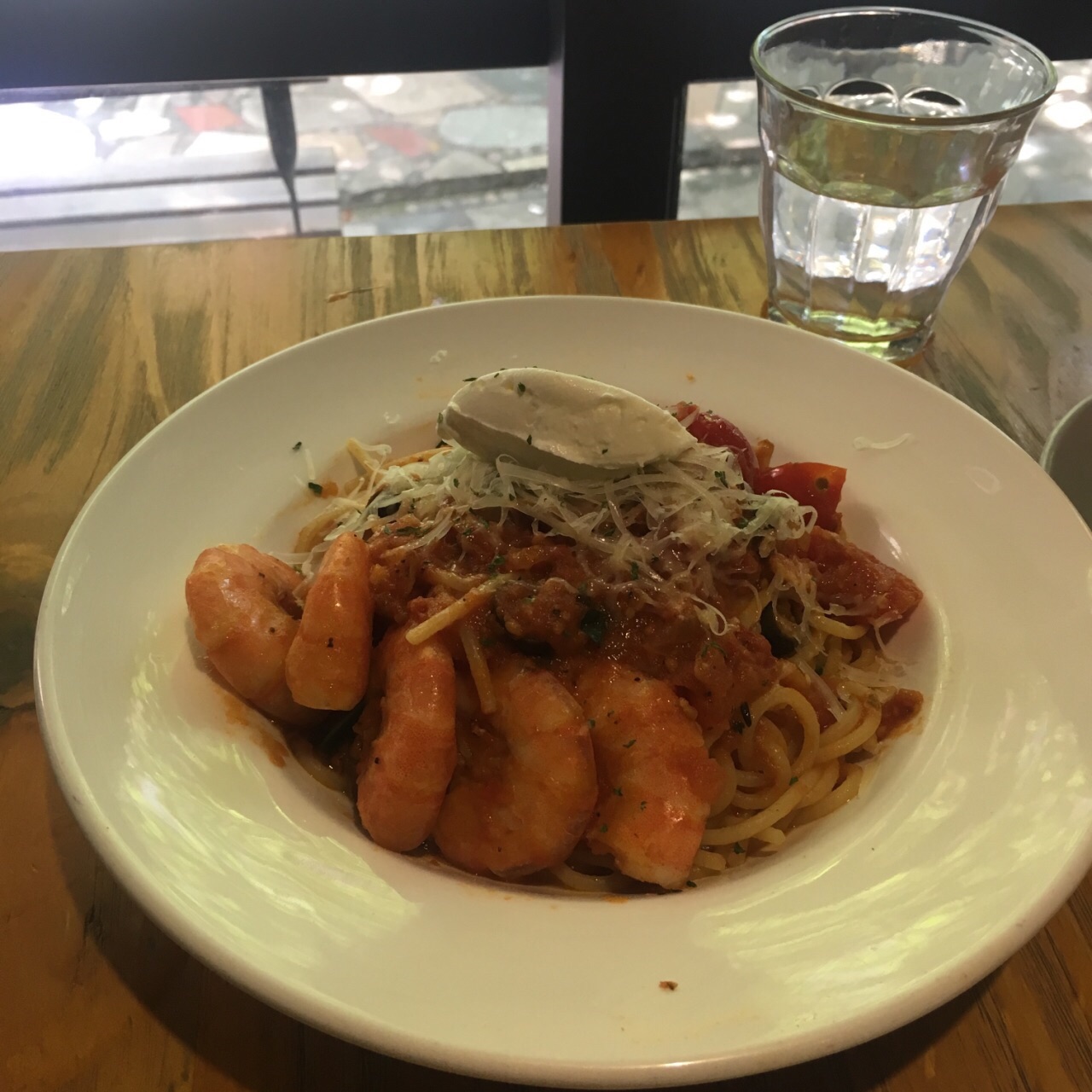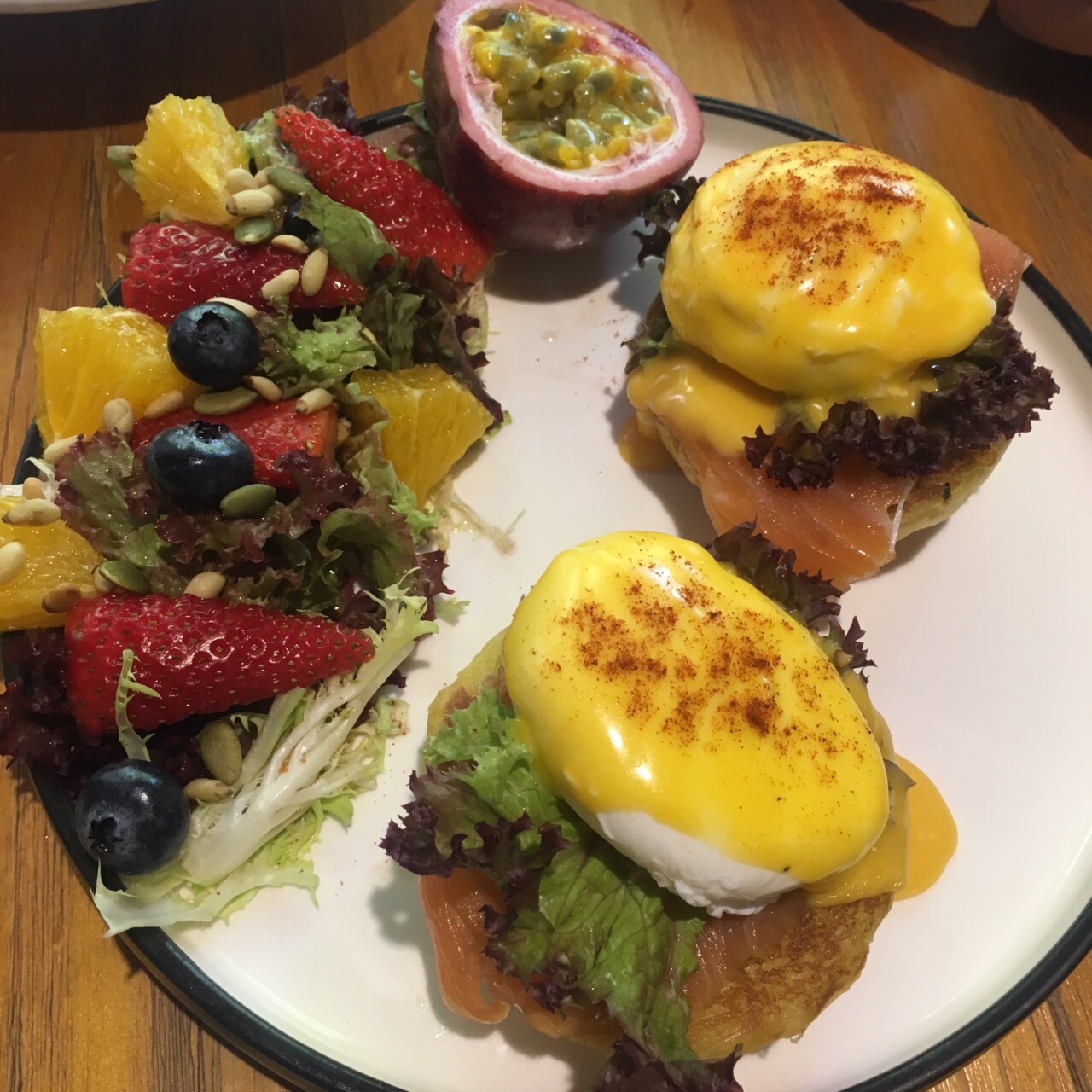 这家CAFÉ是我特意找来与朋友周末相聚的地方。主要是因为看榜单说推荐排名前几。地方不是很大,交通还算方便。里面桌子只有十桌左右。选了靠最里面的两人位坐三个人就为了对着外面的“后花园”。食物份量比较精致,不像外面的早午餐系列,一份够两人个女生吃,一份早午餐份量仅够一人。我们两个还点了一份意粉。味道可以一百份。最后朋友来了加了个华夫饼。不过不失。论环境聊天这里很适合,但仅限人少的时候。人多坐靠近吧台的地方就挺吵的了。