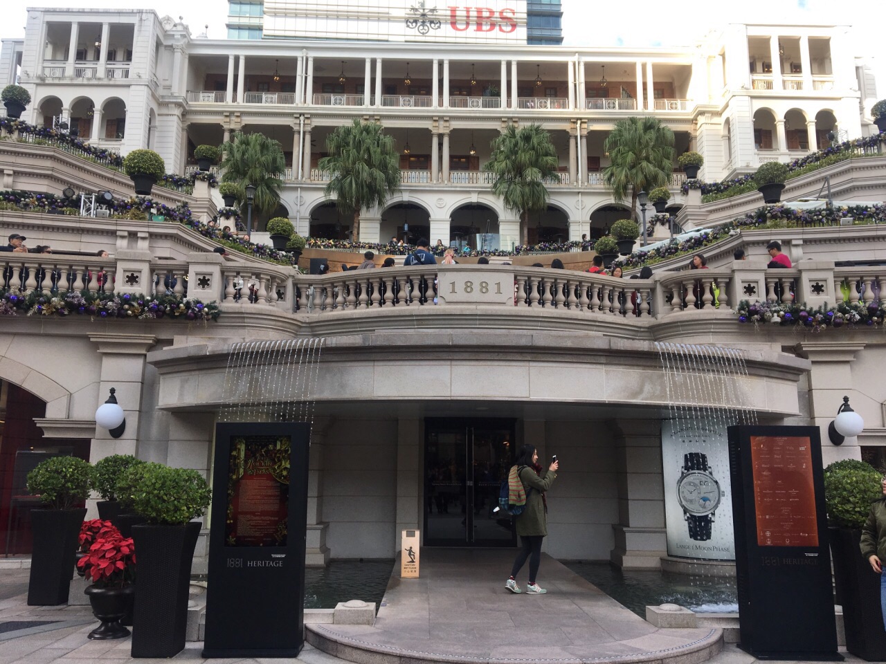 前水警总部大楼,也就是现在的1881,是尖沙咀最为时尚也最有怀旧感的购物地。前水警总部大楼很好找,就是1881的那栋主楼。马厩在哪儿就不太清楚,不知道现在改成什么奢侈品的购物地了。这栋欧式的建筑一直到1996年之前都是水警所用。在日占期间水警总部的地下有大规模的地下通道,这个通道目前在1881的入口处英皇珠宝的店里还能够看到一些昔日的痕迹,但是通道已经被封闭了。圣诞节前去的1881,在台阶上正好有一个唱诗班唱着欢快的歌曲,让整个1881都充满了圣诞欢乐的氛围。