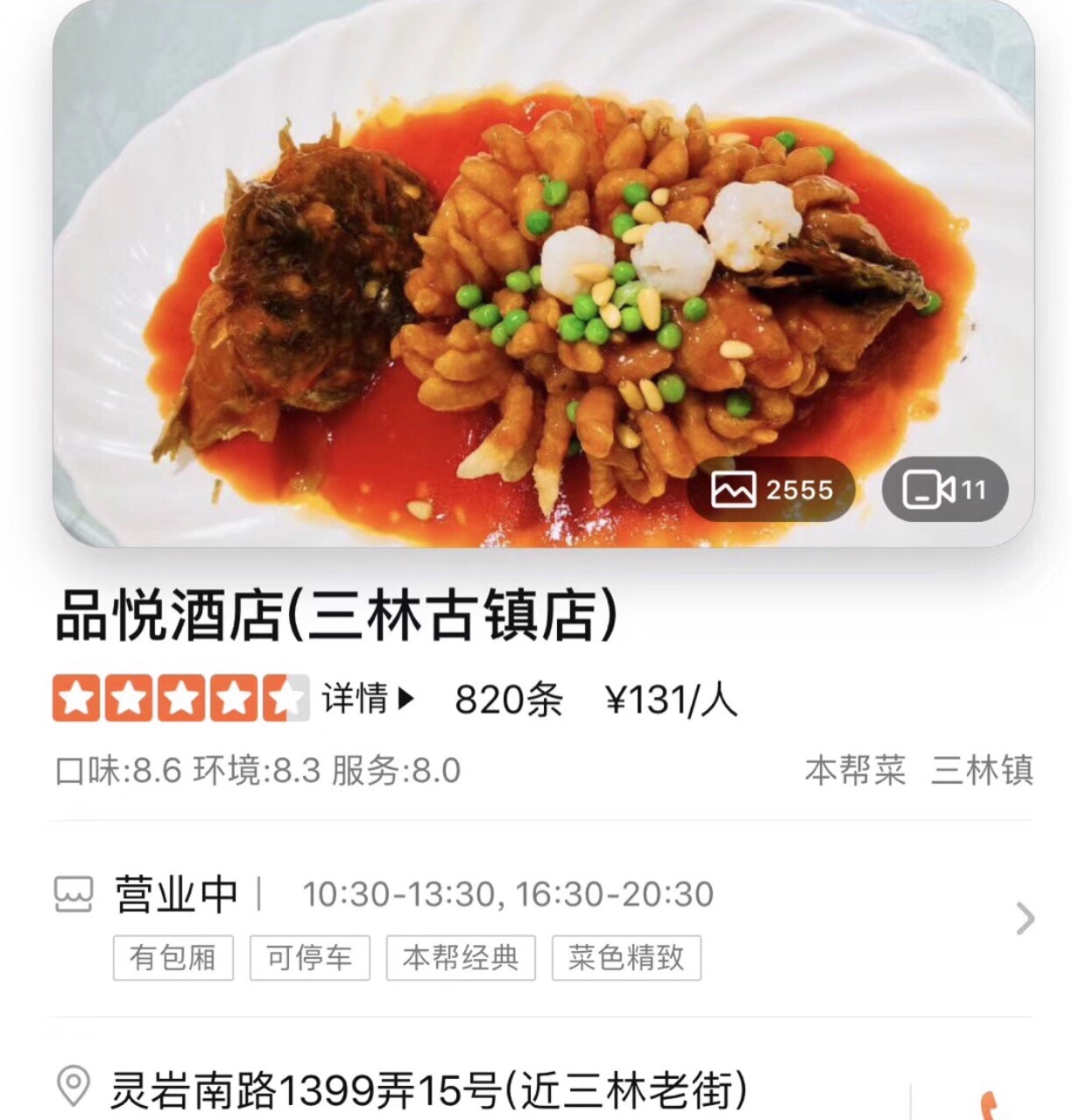 网友2018-10-08好多个喜欢的经典菜!河虾也超赞的!性价比超高!口味一如既往的好!上海本地口味!环境好!都是可圈可点的口味一如既往的好!上海本地口味!环境好!性价比超高!好多个喜欢的经典菜!草头圈子 松子桂鱼 三林肉皮!都是可圈可点的!河虾也超赞的!
