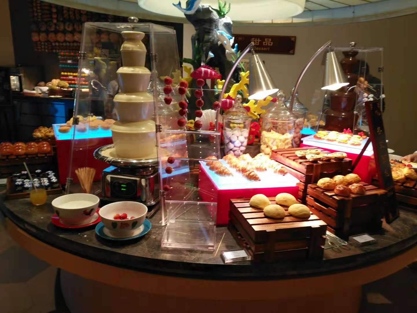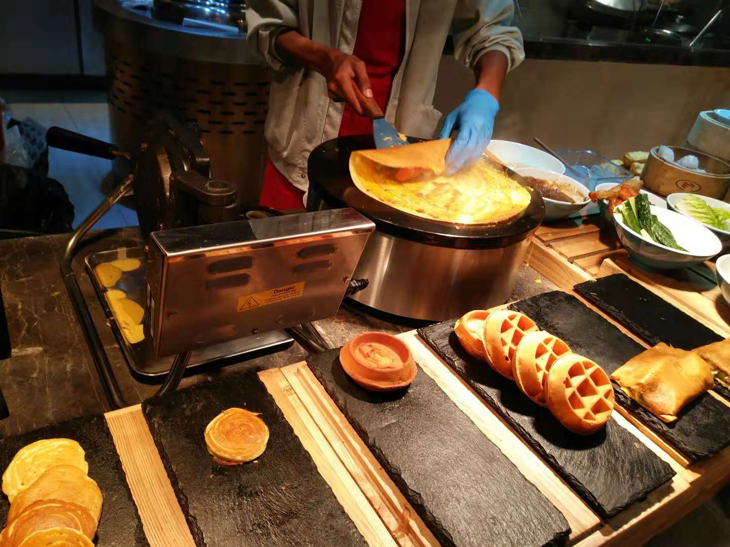 早餐不仅菜品丰富,服务也好,小孩2岁多,那天去吃早餐时有点不舒服,一直闹,餐厅经理Young得知后,立马跟厨房沟通给小朋友现做了一份南瓜泥,还送了游戏币哄小孩,说用完早餐后可以带小朋友去儿童游乐区去玩,这服务实在太贴心。早餐用餐人很多,但菜品供应还是不错的,感觉这个餐厅的一个早餐可以媲美别的酒店的晚餐了。为他的服务点赞