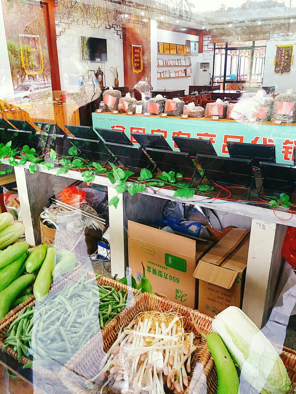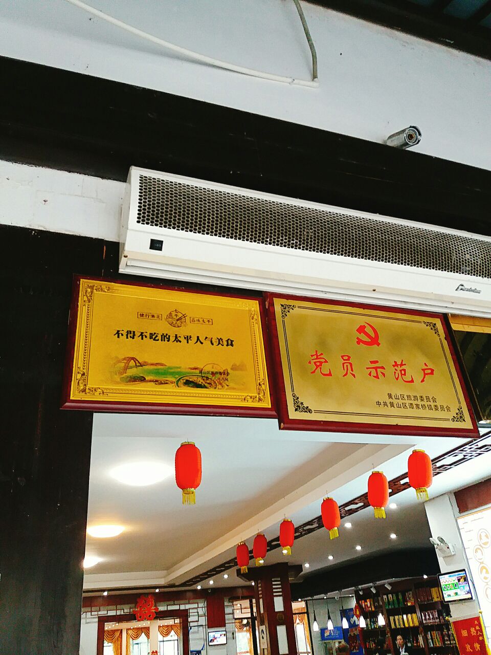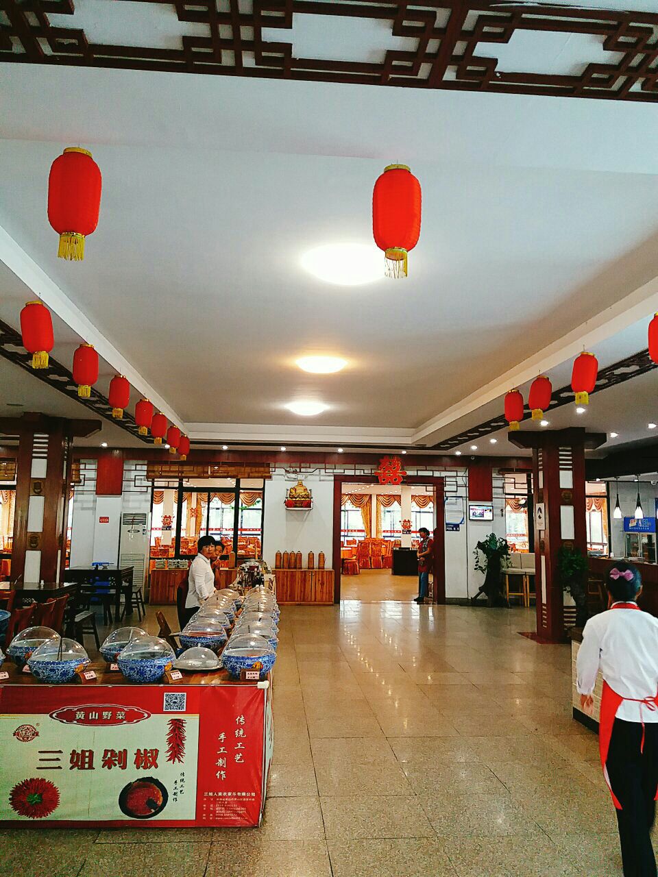 菜也一般,不是很入味,只能说是原汁原味。 大厅可以摆十几桌,非常大。 进去有卖当地特产