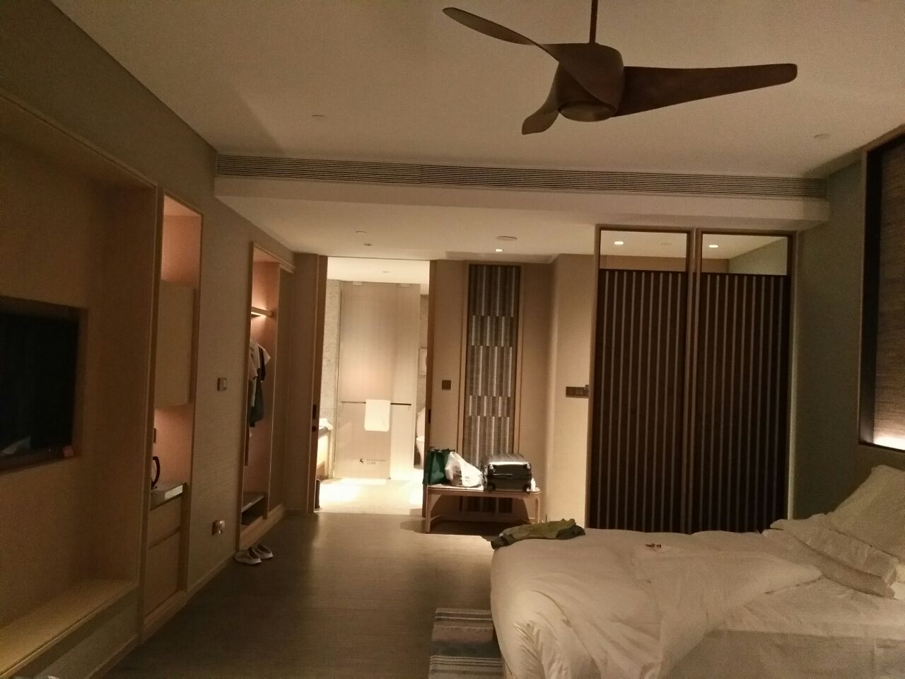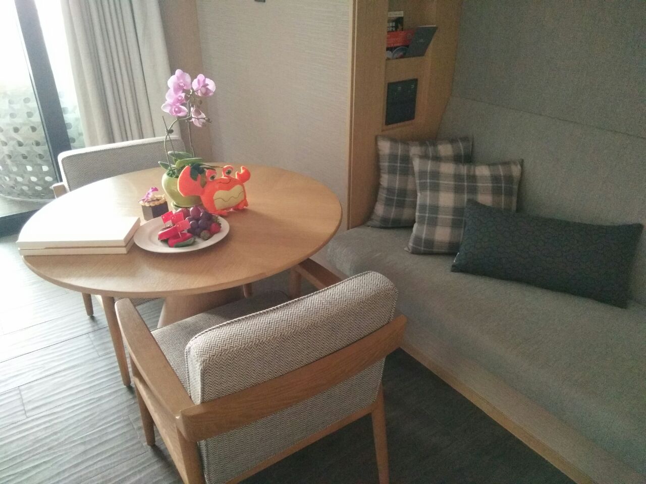 果然仁恒皇冠没让我们失望,直接升级了豪华海景房,有送了水果和宝格丽的套装,房间是我喜欢的装修风...