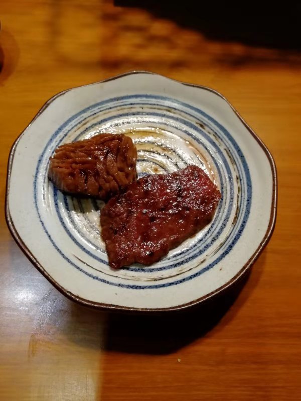 知道他家很久了,可是你离得远我过去的少,始终是棵不得拜的草,最近去中日医院看病,顺便就把这根草薅了。 [环境]类日式的环境让人感觉很舒服,迷晕的灯光,烤肉滋滋冒油,聊天喝酒吃肉,惬意得很~ 「镇店烤肉」早就听朋友说他家镇店肉好吃了,今日一试,果然名不虚传。 「拉菲(红酒)牛小排」牛舌为此地立店之本,肉质和配料毫不含糊,好吃。 [服务]店里的服务非常好,态度热情,来去无声,很不错。