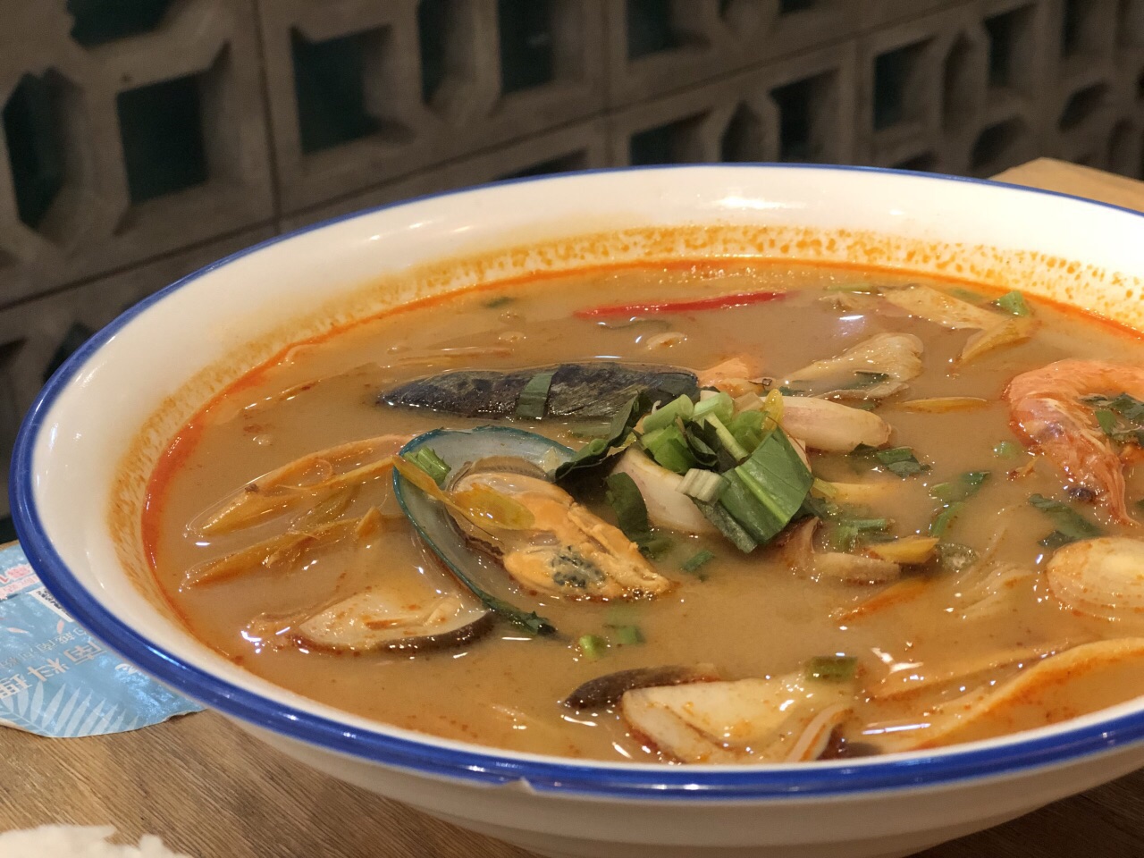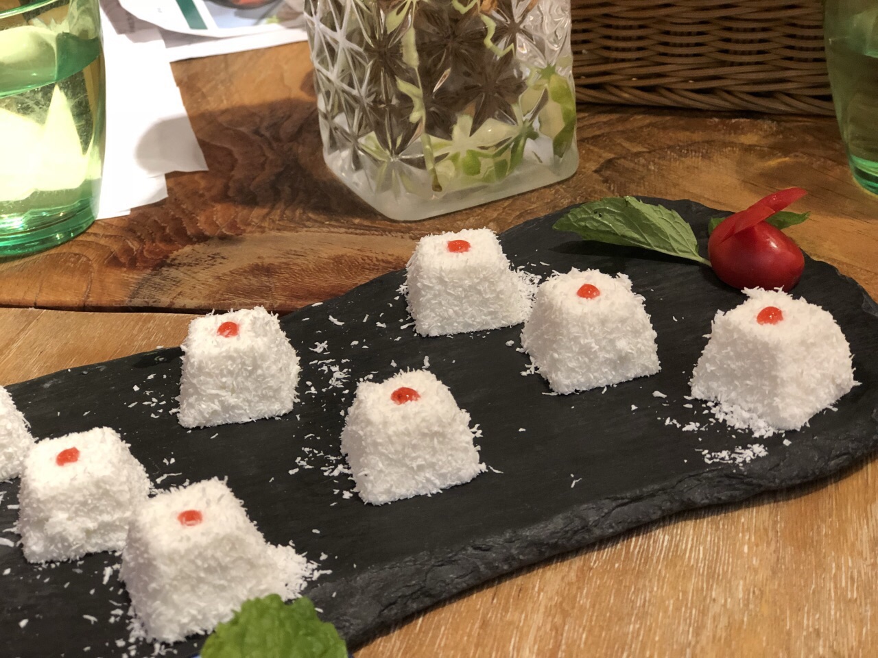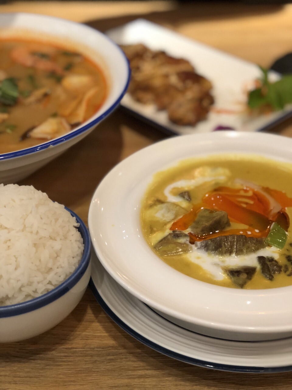 来世茂看完电影下来觅食,发现这家越南料理,好像新开的哈,店虽小,但布置得挺有异域风情~见我们俩人,可爱的小妹推荐了双人团购餐,本来觉得不够可能要加点,实际上还有余~ 咖喱牛腩配米饭,不能拒绝的咖喱!!(๑´ڡ`๑)好吃,一碗米饭拌咖喱吃个精光哦~超爱里头的土豆! 冬阴功汤萌粉,份量超大的,里面是细粉,好多料的,新鲜的虾和青口,还有蘑菇鱿鱼。朋友把面条夹出来盛在小碗里一碗下肚已经饱足,实际上里面还有两三小碗的量~蹭了几口汤,很好喝呢~不过朋友觉得汤头比较甜,这么大碗会容易腻哦。 香茅鸡扒好吃~ 凉糕,椰丝奈斯!口感入口即化~不会腻~ 完美~