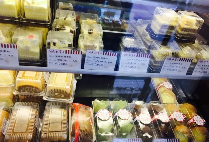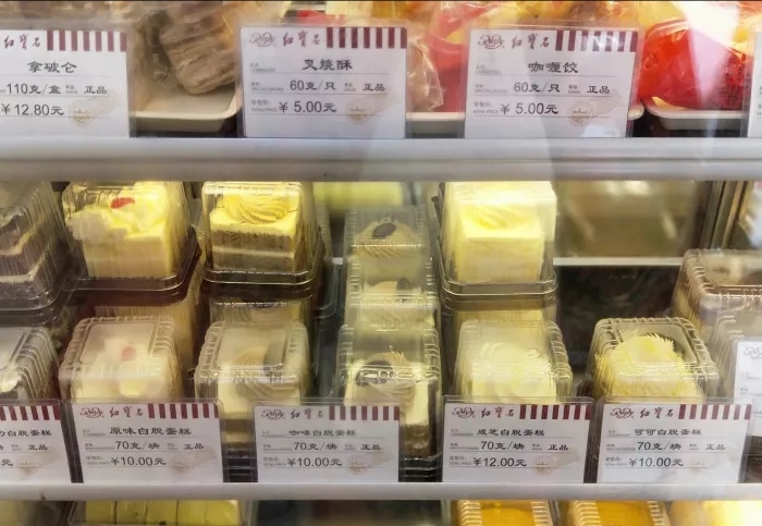 红宝石是沪上老字号的蛋糕点了,始终保持着一种英伦范儿或者说某种老克勒风范。 红宝石的店也蛮接地气的,很多都开在居民区比较密集的地区。 路过这家店,里面人还蛮多的,老阿姨占大多数。最喜欢的还是奶油小方和掼奶油。