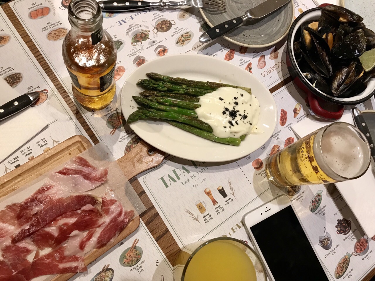 参观完巴特略之家到了当地吃晚饭的时间,斜对面就是这家,基本全部客满,幸亏店面非常大,在最里侧找到了四人座。 点了最具当地特色的海鲜饭,美味,稍微有点咸,绝对比国内吃到的好吃的多,并没有夹生饭的感觉。 青口贝很新鲜,芦笋配酱香嫩极了。 服务态度很好。