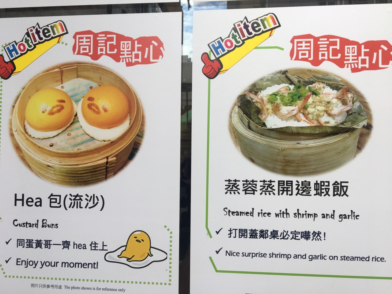 周记点心就是香港常见的港式小笼蒸点店,它家的流沙包做成囧脸的模样,叫做Hea包,其它的像是烧麦、虾饺,吃了过后也没有太深刻的印象。不过后来才听香港的朋友说,周记的芝麻虾多士还有流沙西多士都很不错,看来还要再得光顾一次了。另外周记还有各种的蒸饭可以打包,像蒸蓉蒸开边虾饭、蒸排骨饭,回家就不用再煮饭了。
